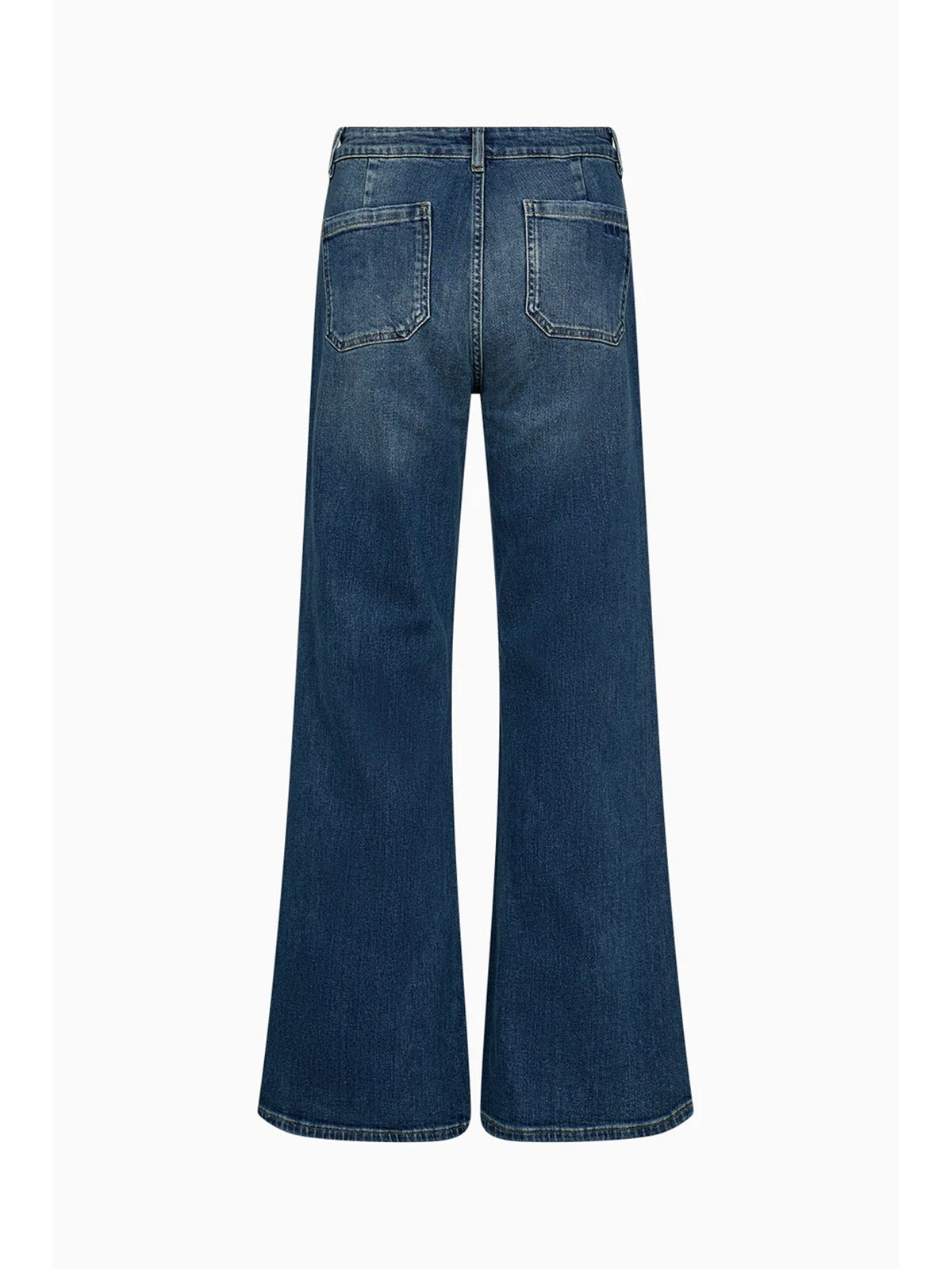 Jeans fra IVY Copenhagen. Jeansene har mellem høj talje samt tætsiddende pasform og brede ben. De lukkes med lynlås og knap. Bukserne har en lille smule stræk. De to påsyet lommer foran samt baglommer.