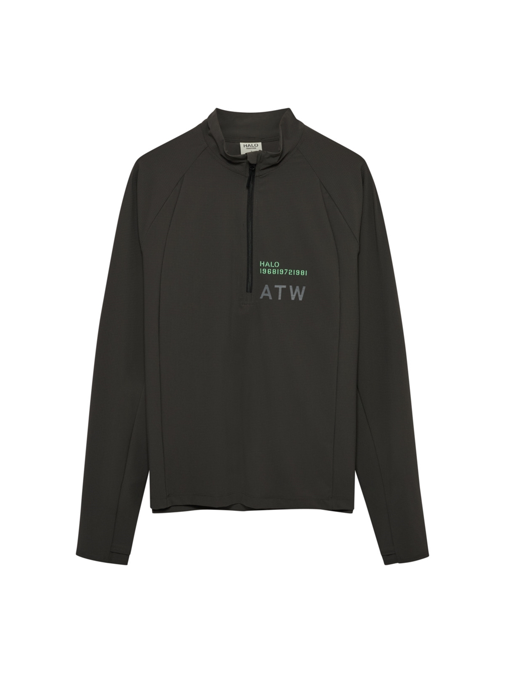 Trøje fra HALO. Trøjen har høj hals med lynlås og lange ærmer. Den har logo tryk på brystet og tryk på ryggen.