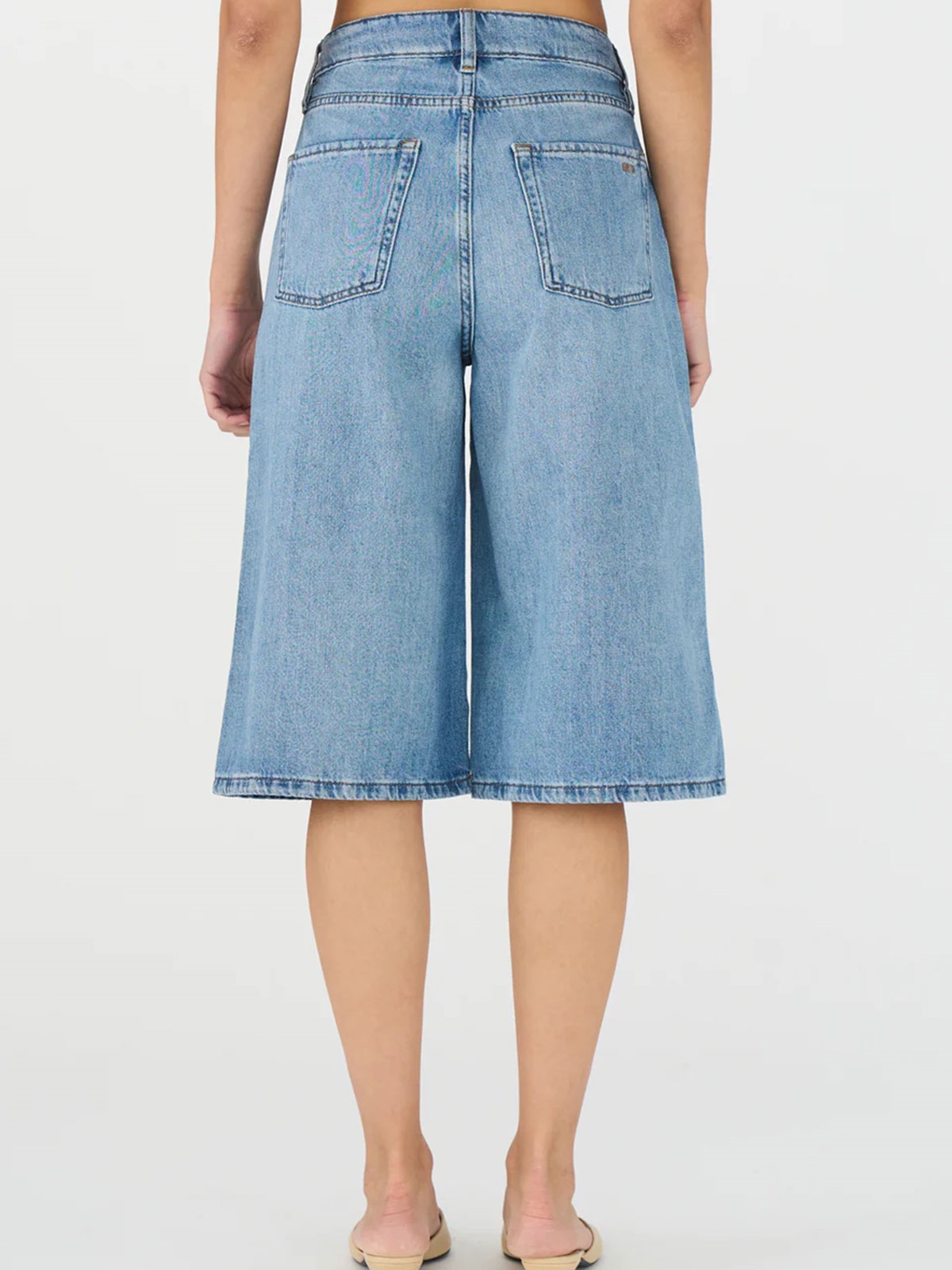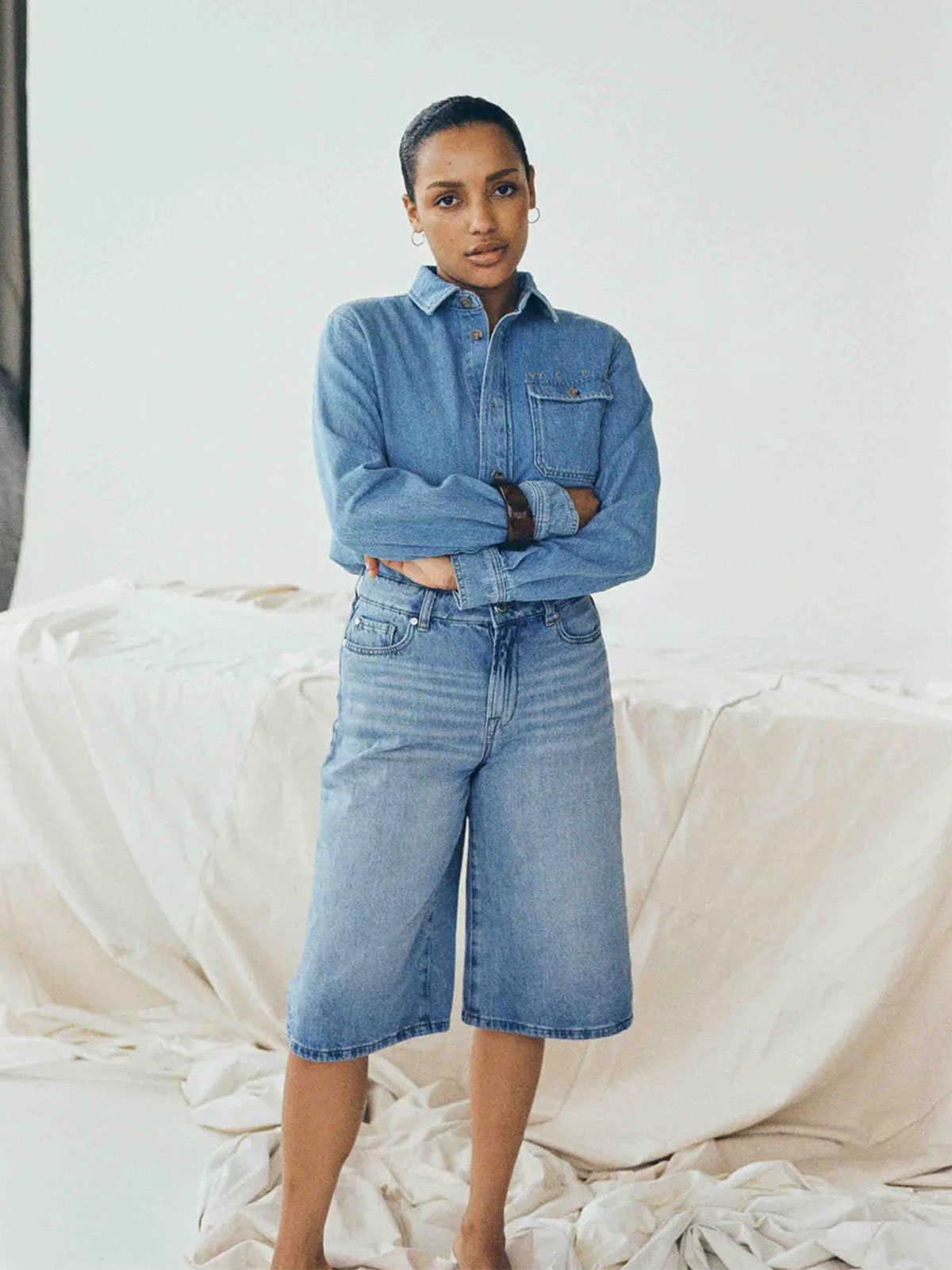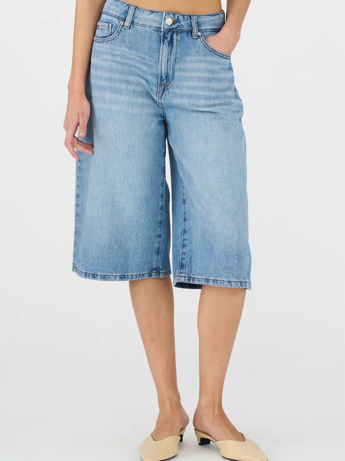 Denim shorts fra IVY Copenhagen. Jeansene har høj talje og vide lår. De lukkes med lynlås og knap. Shortsene har lommer foran og bagpå. Afslappet pasform.