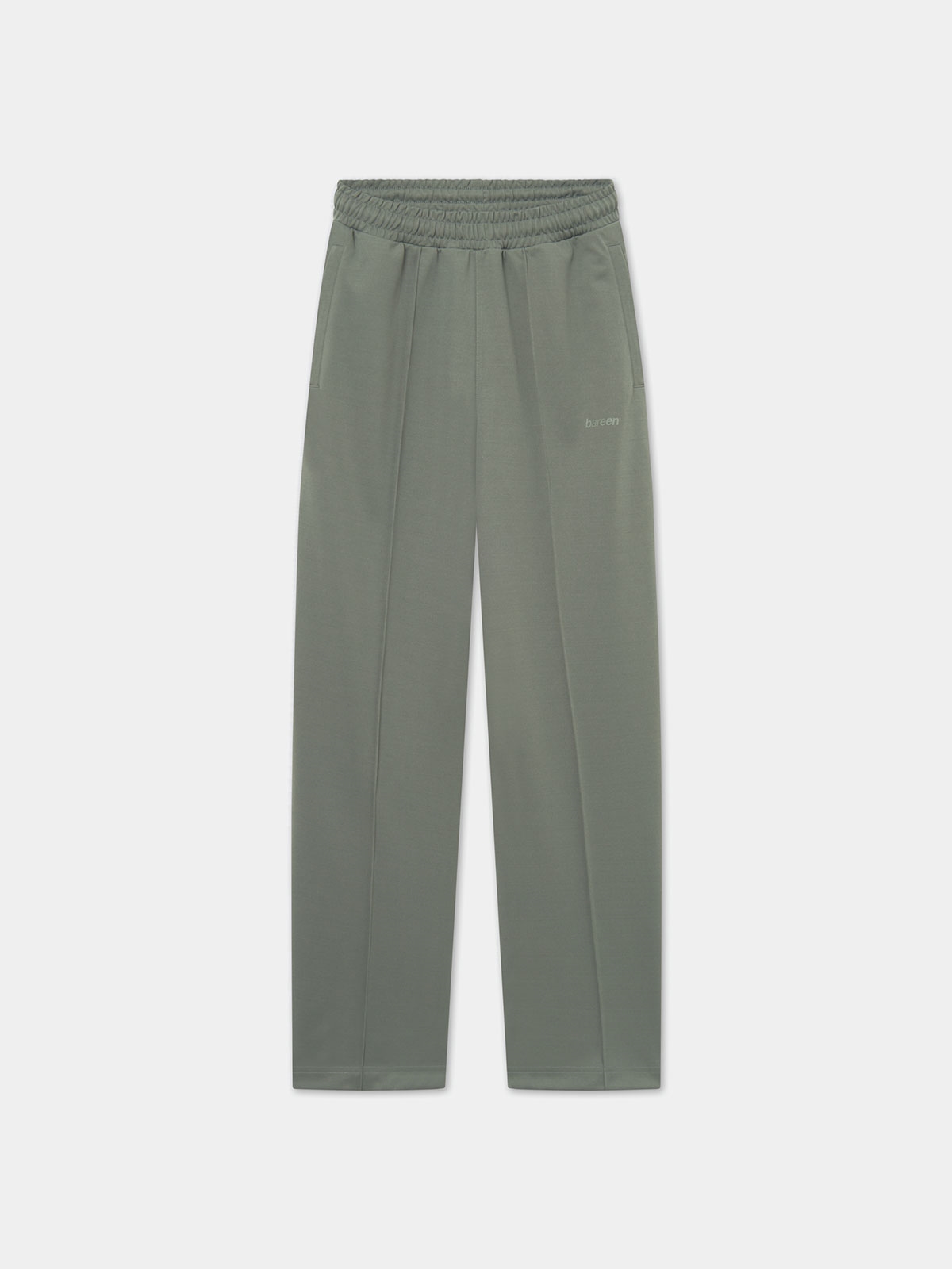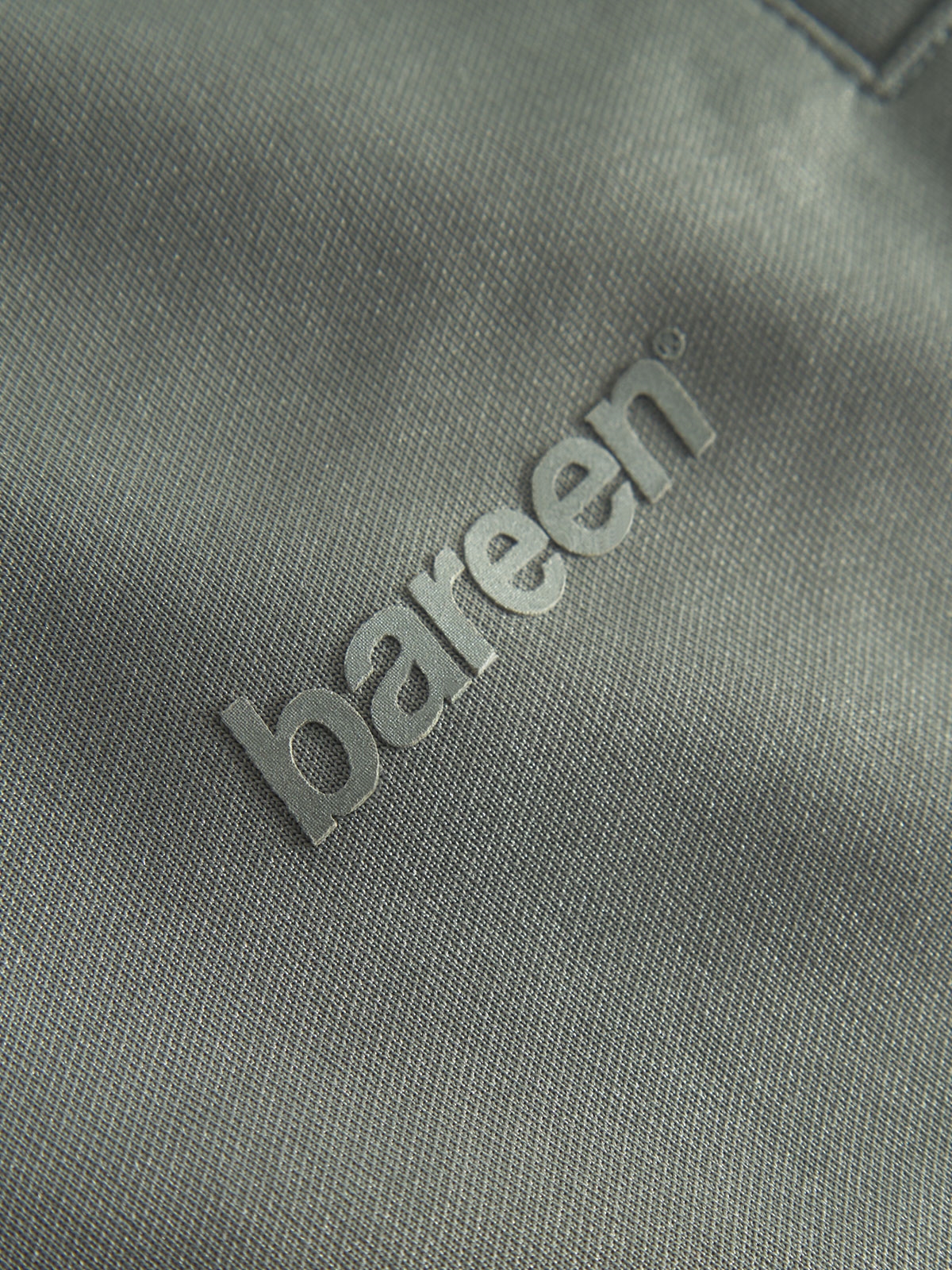 Track bukser fra Bareen. Disse bukser har elastik i taljen samt vide ben med læg. Logo på venstre lår.