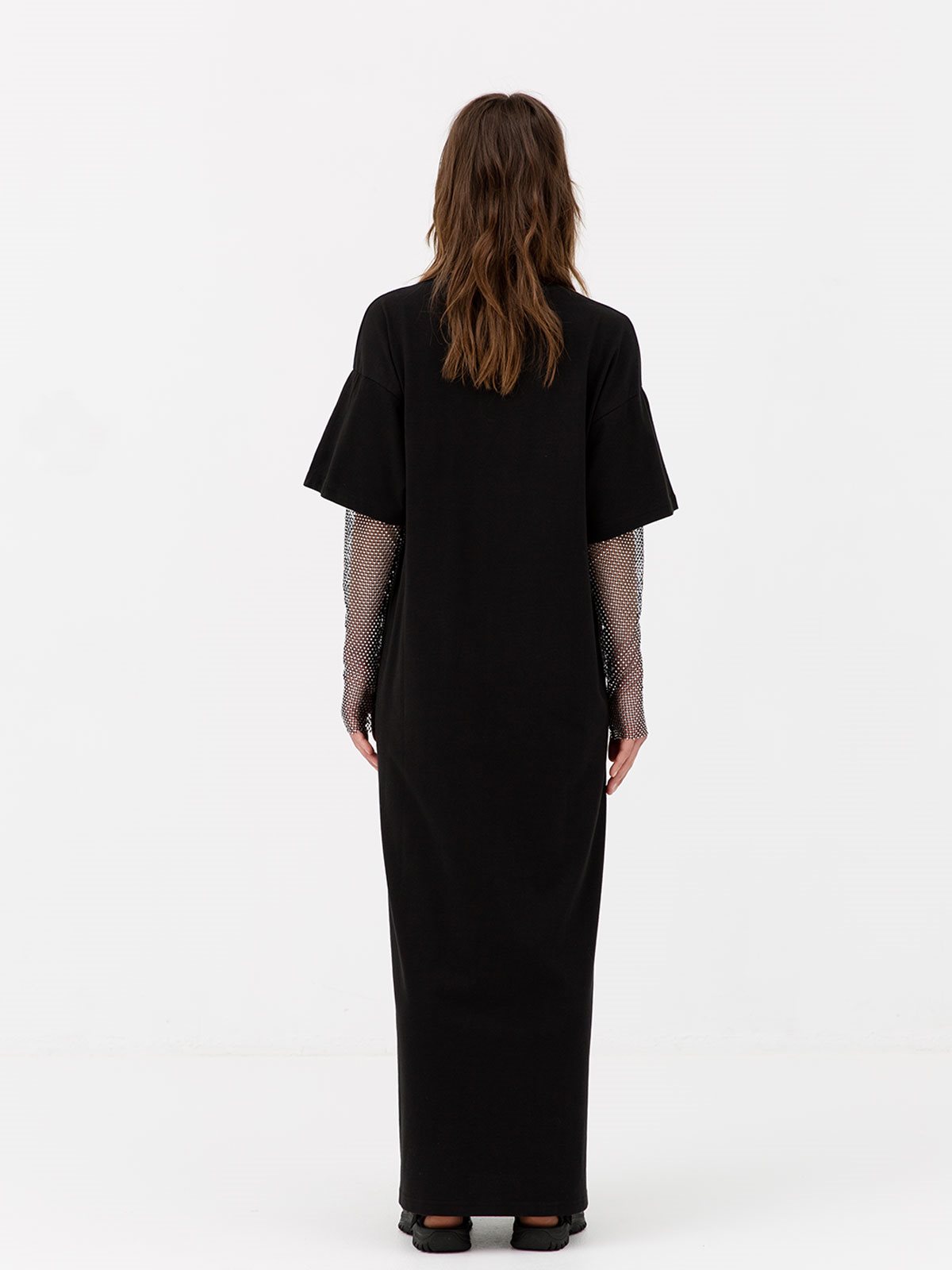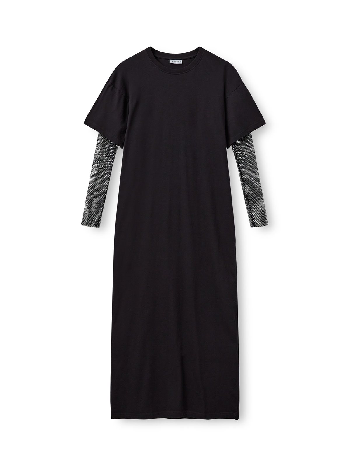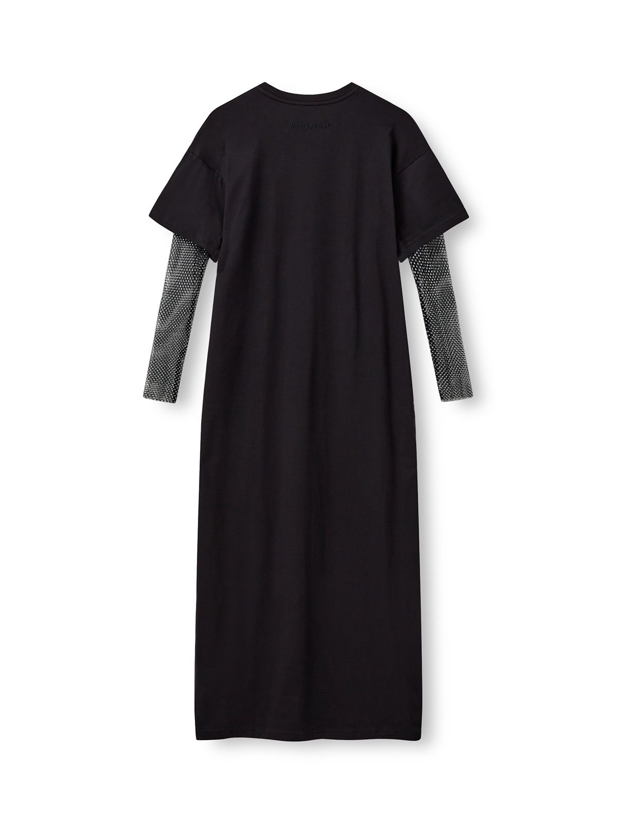 T-shirt kjole fra H2OFagerholt. Kjolen har rund hals og korte ærmer med lange net ærmer under besat med sten  Den har broderet logo i nakken. Normal pasform.