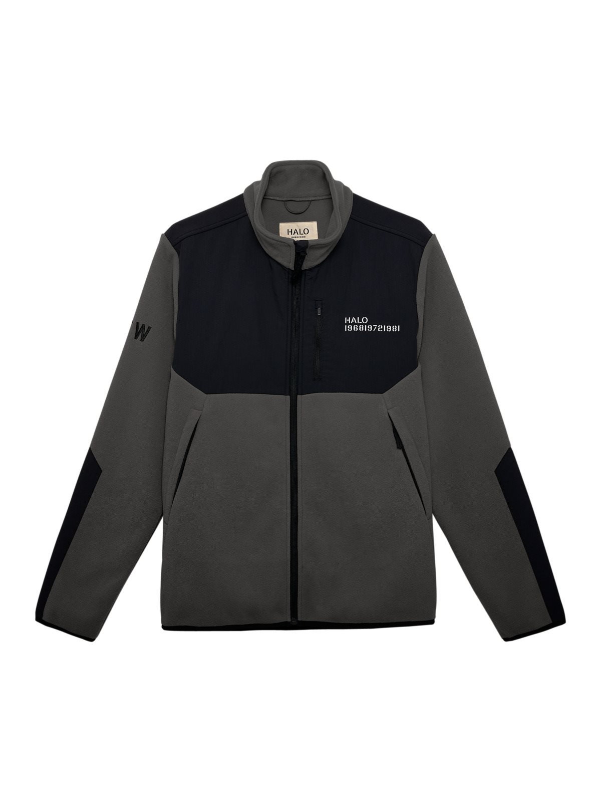Fleece i kontrast farver fra HALO. Jakken er i blød fleece med høj hals og den lukkes med lynlås. Jakken har to skrå lommer i siderne samt en brystlomme - alle med lynlås. Den har logo på brystet.