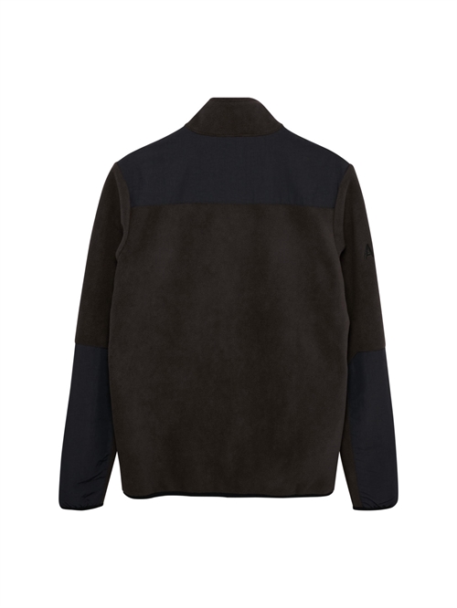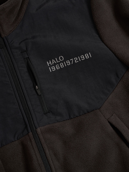 Fleece i kontrast farver fra HALO. Jakken er i blød fleece med høj hals og den lukkes med lynlås. Jakken har to skrå lommer i siderne samt en brystlomme - alle med lynlås. Den har logo på brystet.