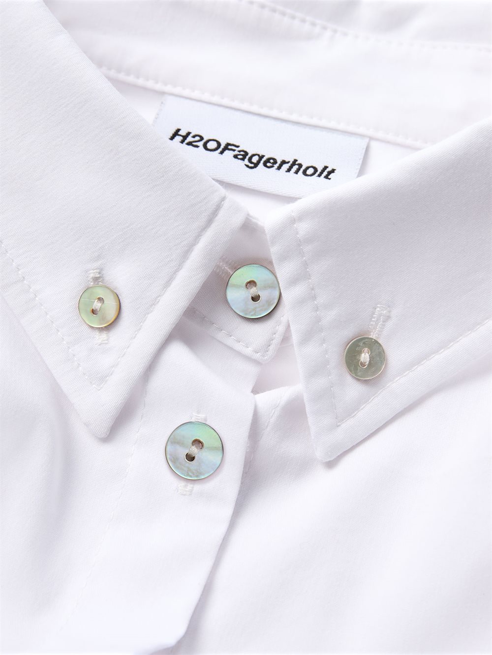 Klassisk skjorte, med et tvist, fra H2OFagerholt. Skjorten har krave og lukkes med knapper. Den har en brystlomme med broderet logo.