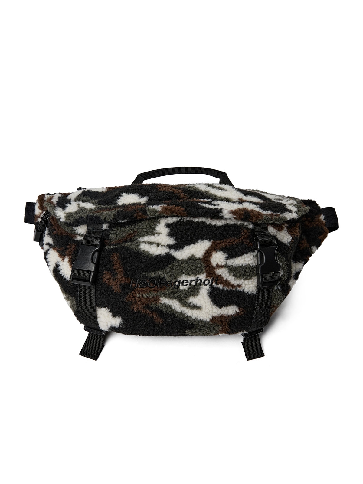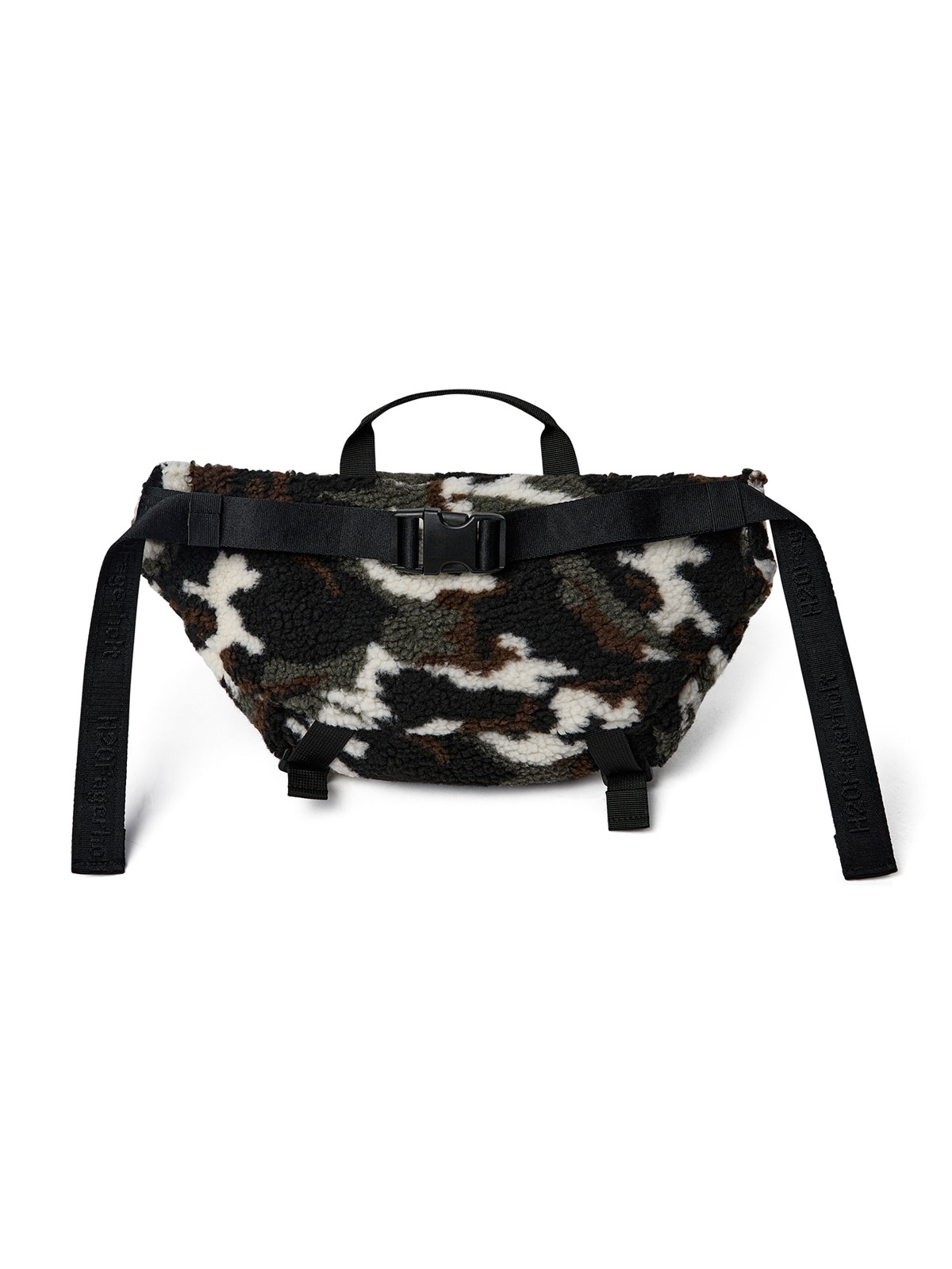 Plys bæltetaske fra H2OFagerholt. Tasken har en stor lomme foran, en øverst samt en lille indvendig lomme, alle lukkes med lynlås. Tasken kan både bruges som bæltetaske og crossbody. Logo broderet foran samt en lille hank øverst.