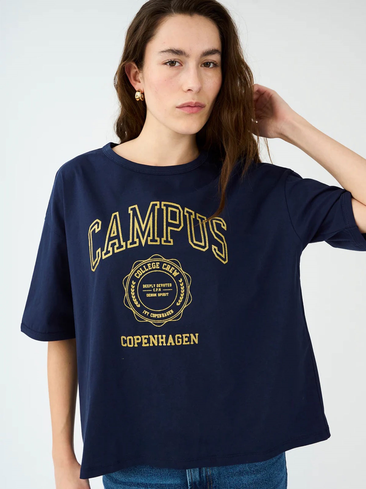 T-shirt fra IVY Copenhagen. T-shirten har rund hals, korte ærmer og glimmer tryk på brystet. Afslappet pasform.