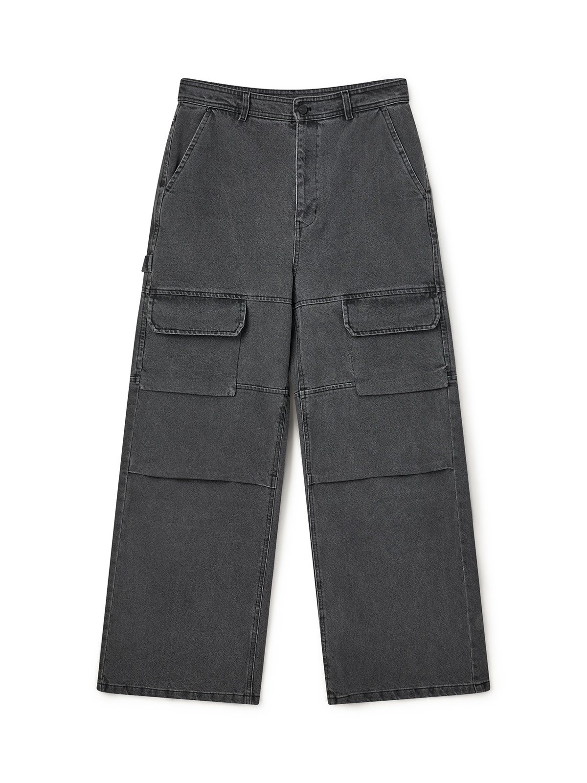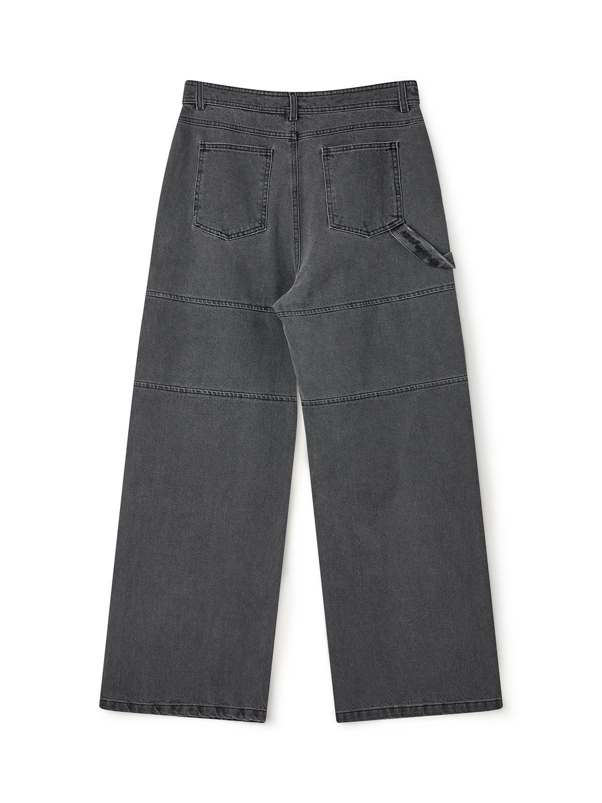 Baggy jeans fra H2OFagerholt. Bukserne har lommer på lårene, brede ben samt vandrette læg ved knæene. Rem i venstre side med broderet logo. Jeansene lukkes med lynlås og knap. Løs pasform.