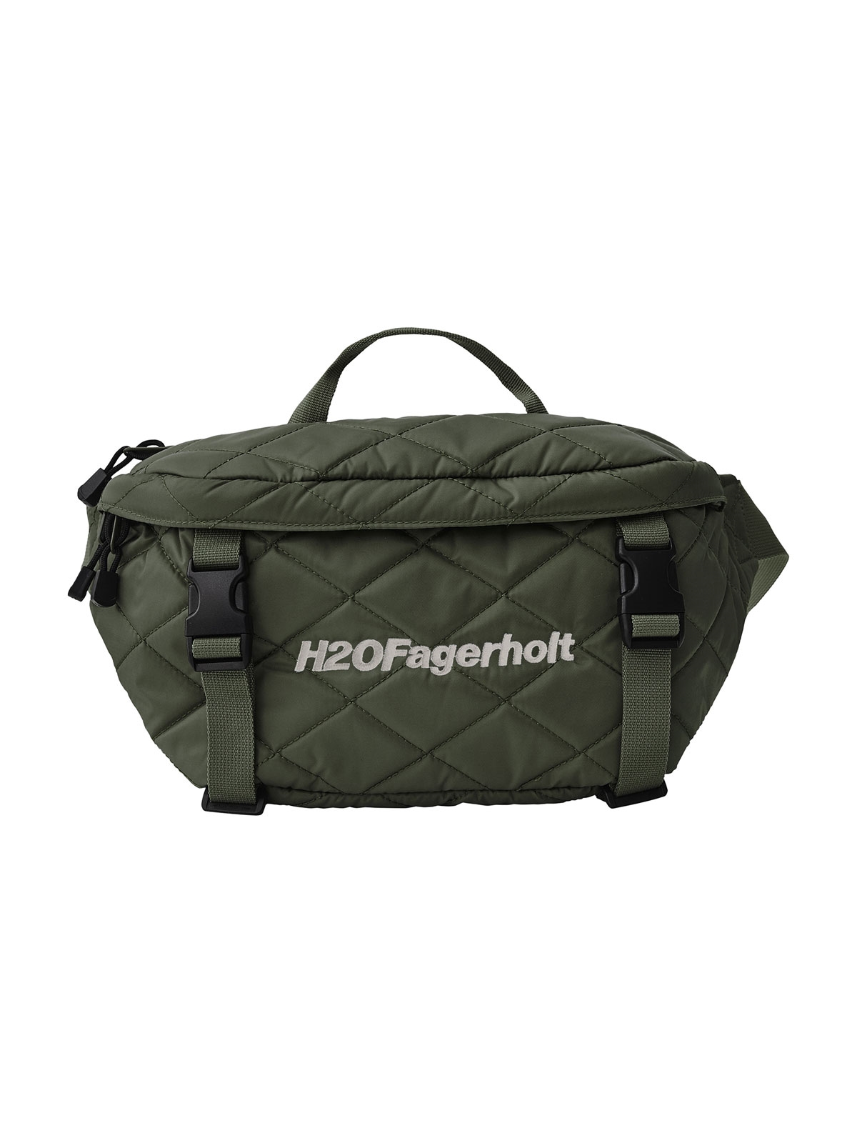Quiltet oversize bæltetaske fra H2OFagerholt. Tasken, der er en cross over bum bag, har 2 lommer med lynlås samt en lille hank.
