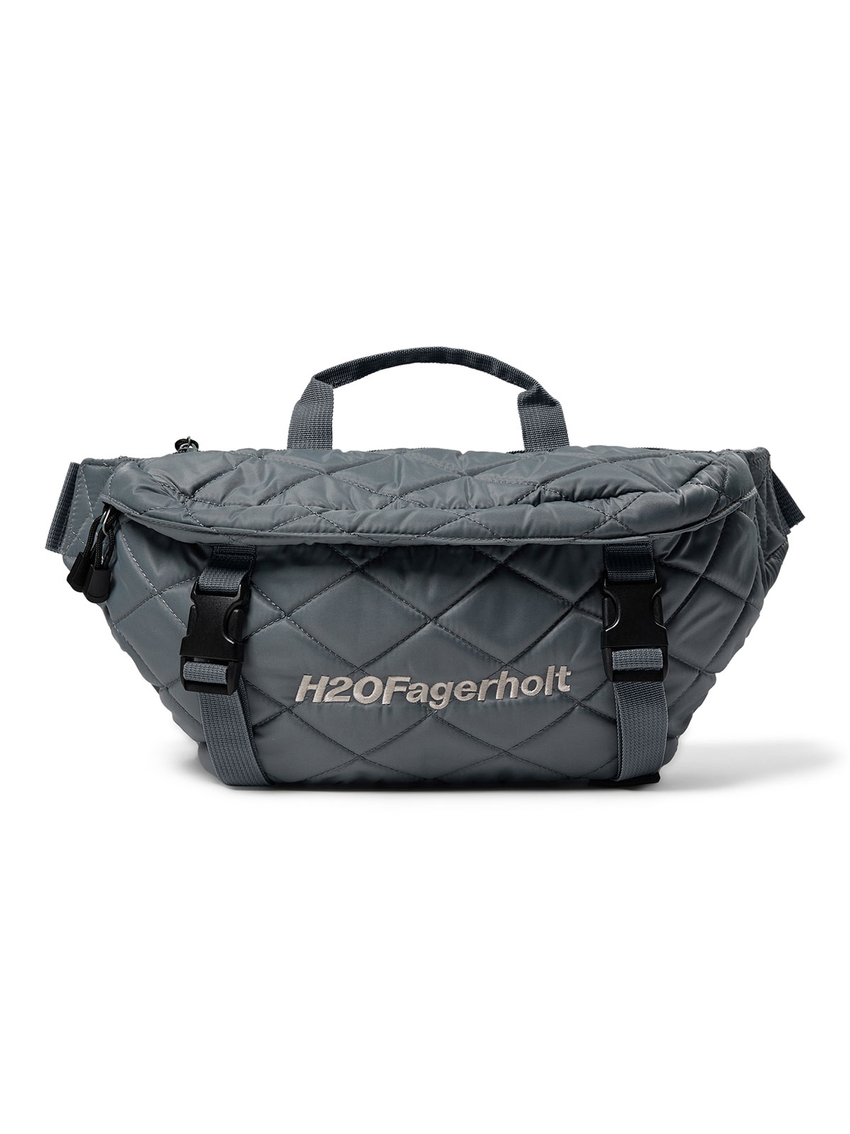 Quiltet oversize bæltetaske fra H2OFagerholt. Tasken har to lommer med lynlås samt en lille indvendig lomme. Den har en bred justerbar rem samt en lille hank. Logo er broderet foran.