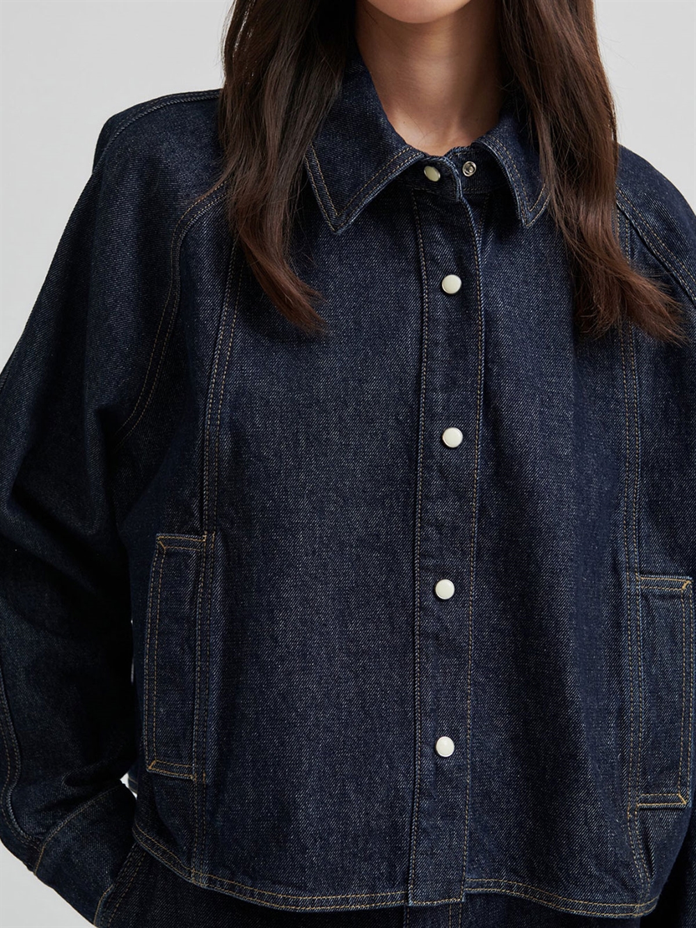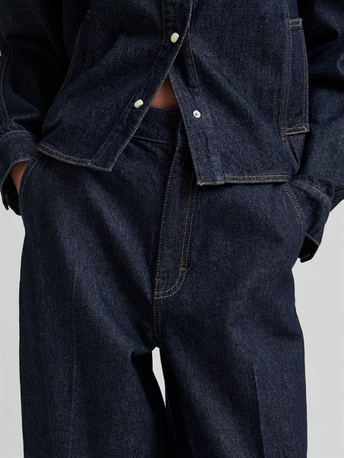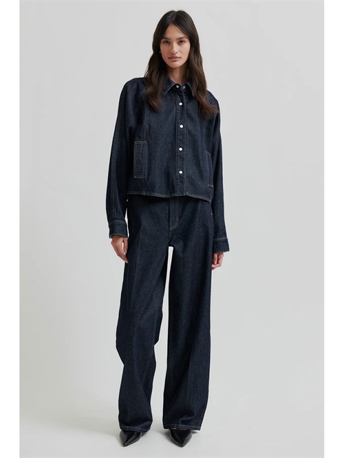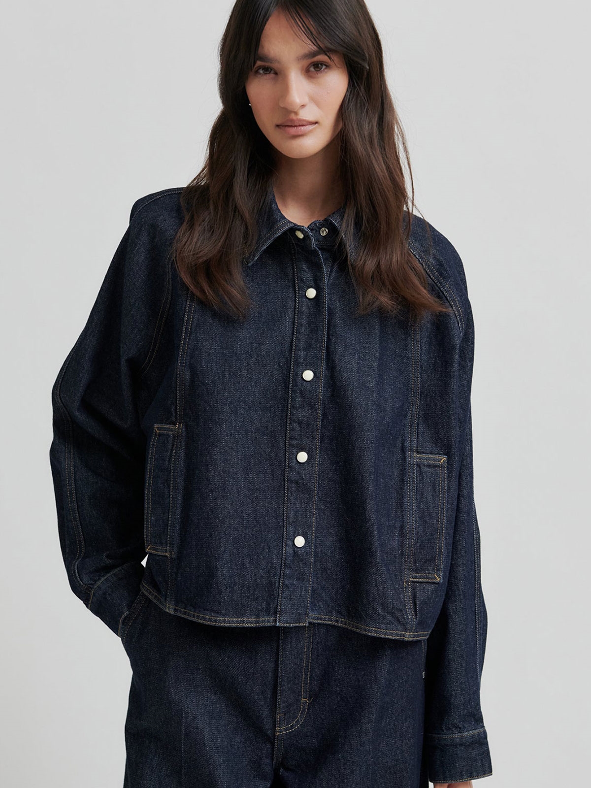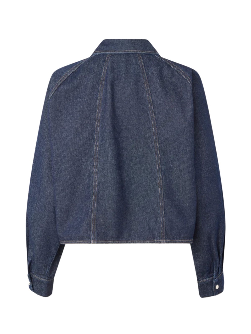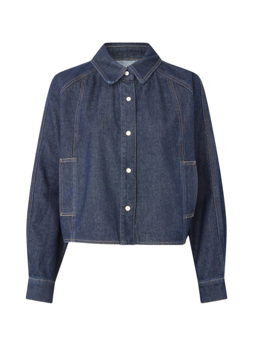 Denim skjorte fra Second Female. Skjorte har en boxy pasform med lommer i siderne. Den har krave og lukkes med knapper.