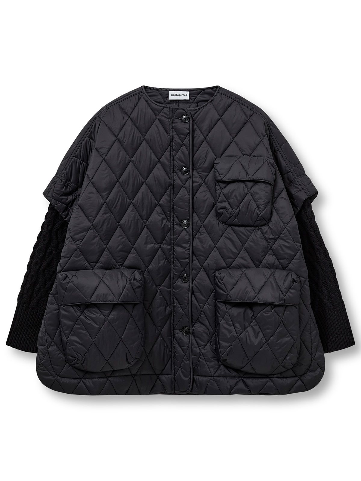 Quiltet overgangsjakke fra H2OFagerholt. Jakken har rund hals og lukkes med lynlås og knapper. Den har påsyet strik ærmer. Logo broderet i nakken. Jakken har tre lommer påsyet foran.