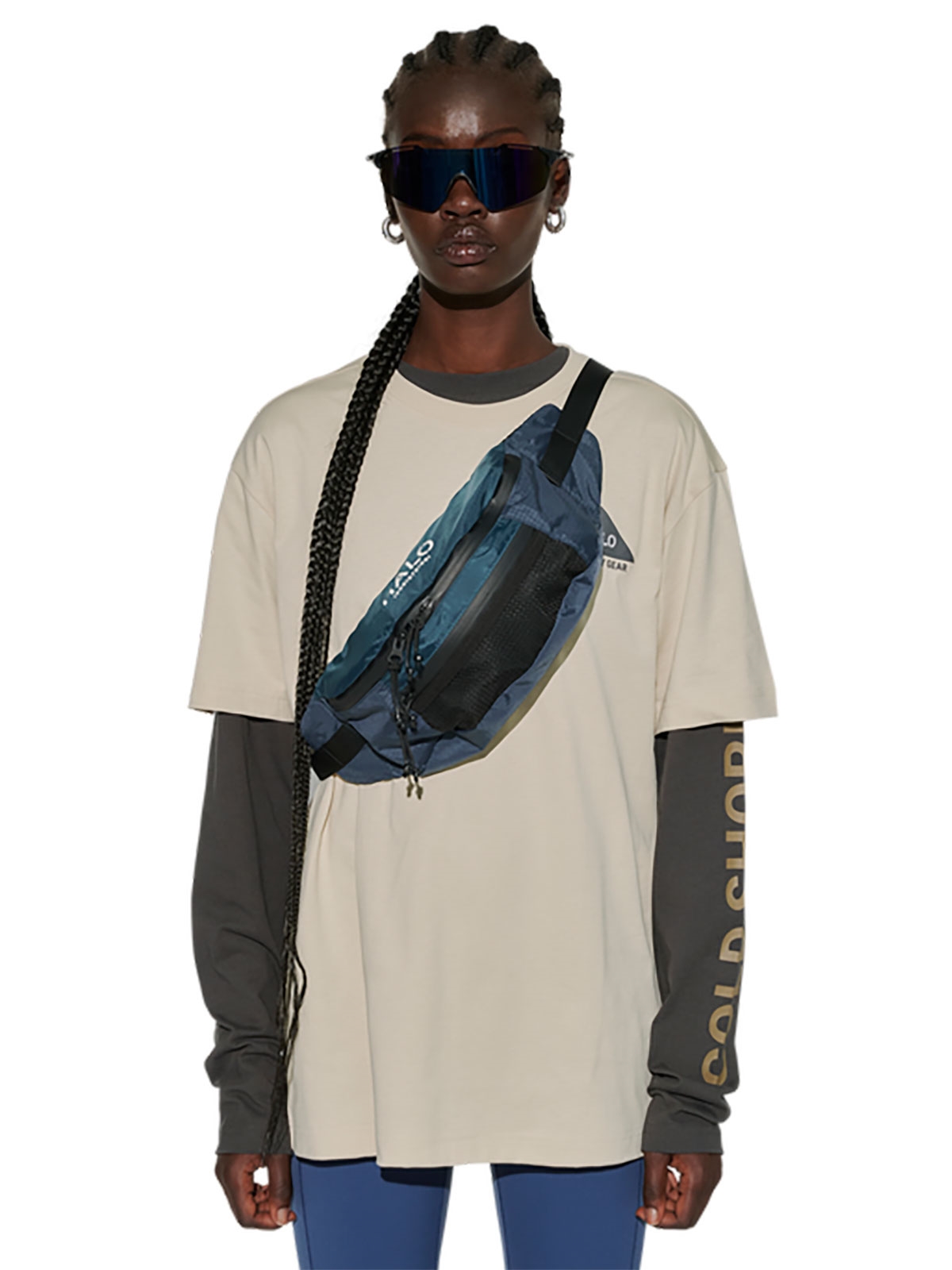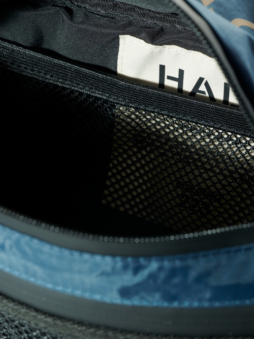 Crossover bum bag taske fra HALO. Den har printet logo og kan lukkes med spænde på en justérbar rem. Den har to rum foran der kan lukkes med vandtætte lynlåse.
