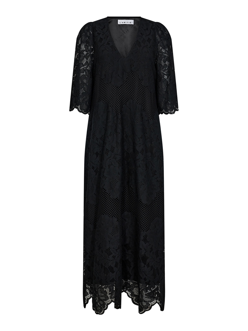 Blonde kjole fra Haute L'Amitié. Kjolen har v-hals og 3/4 ærmer.