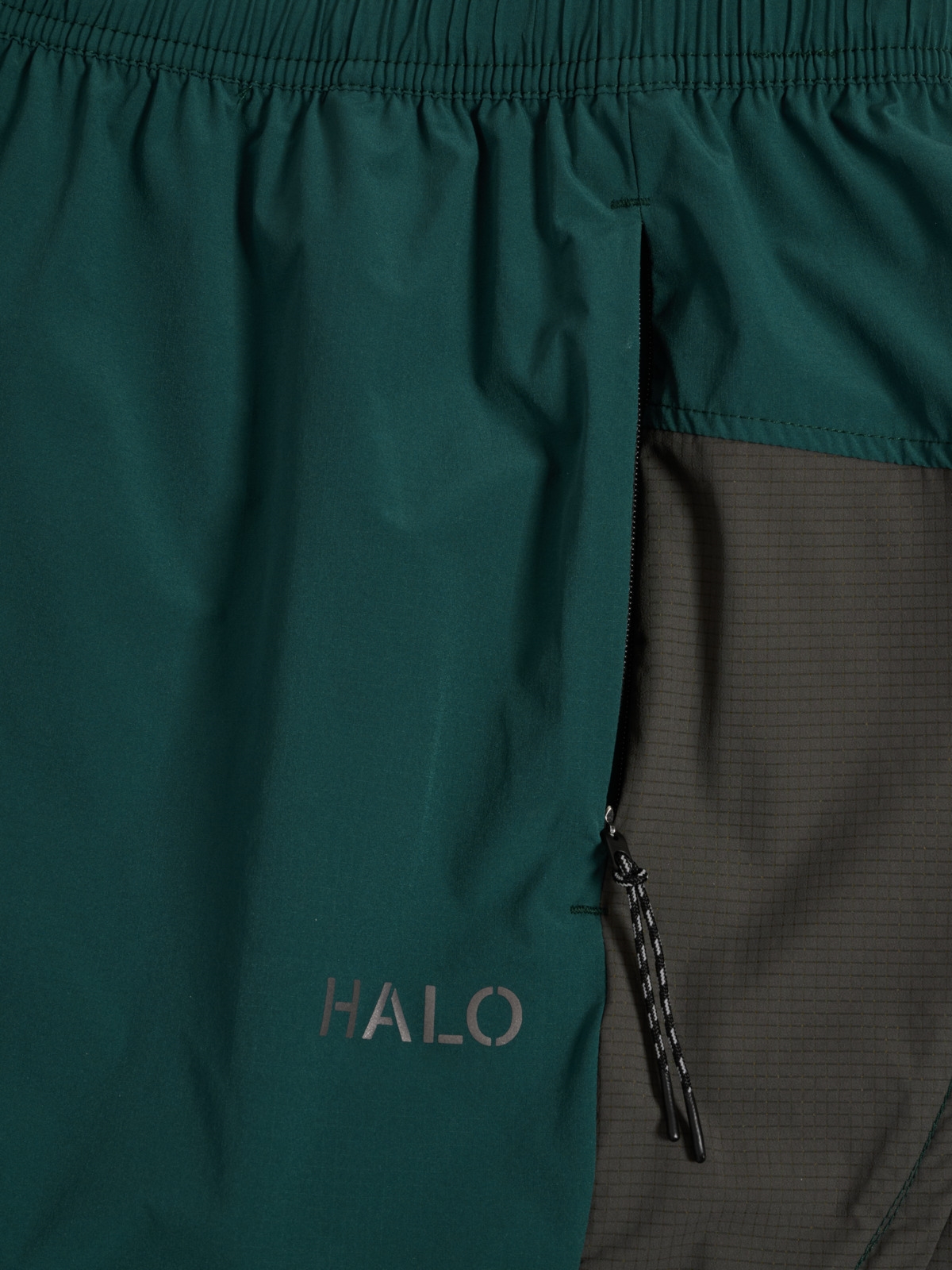 Shorts fra HALO. Shortsene har sidelommer med lynlås samt elastik i taljen. De har printet logo på låret.