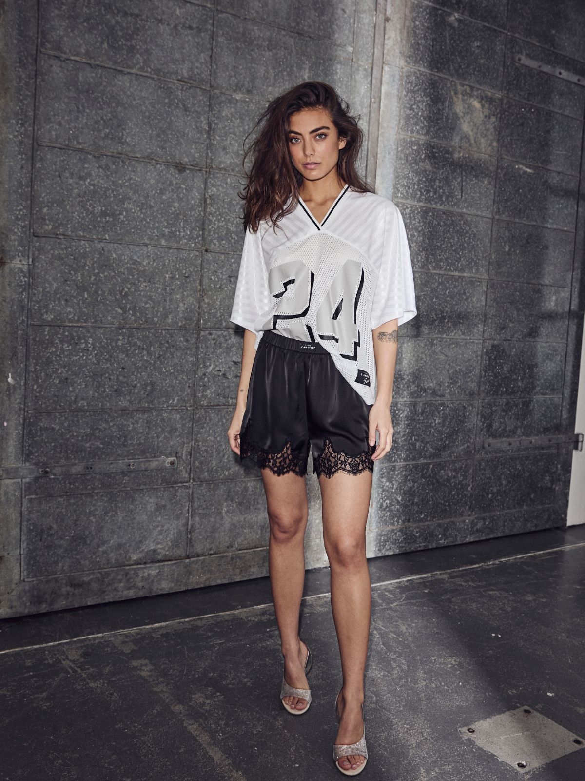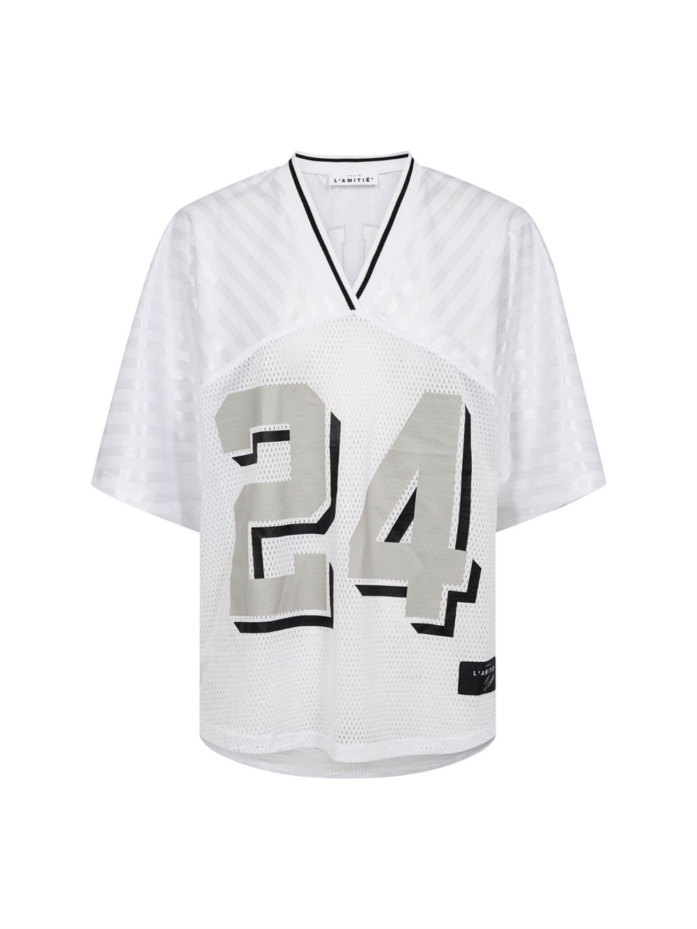 Bluse fra Haute L'Amitié. T-shirten v-hals, korte ærmer og løs pasform.