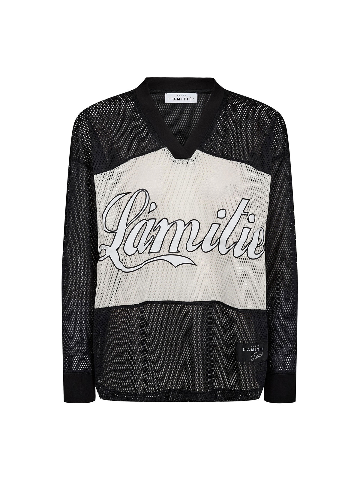 Bluse fra Haute L'Amitié. T-shirten v-hals, lange ærmer og løs pasform. Logo foran og bagpå.