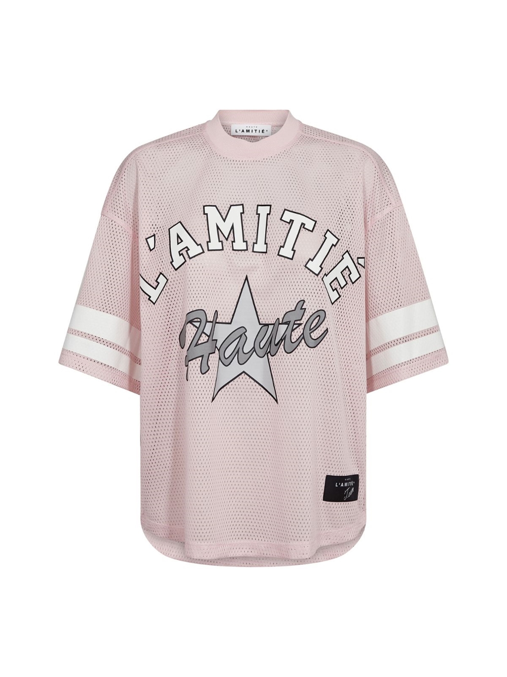 Bluse fra Haute L'Amitié. T-shirten rund hals, korte ærmer og løs pasform. Logo foran.