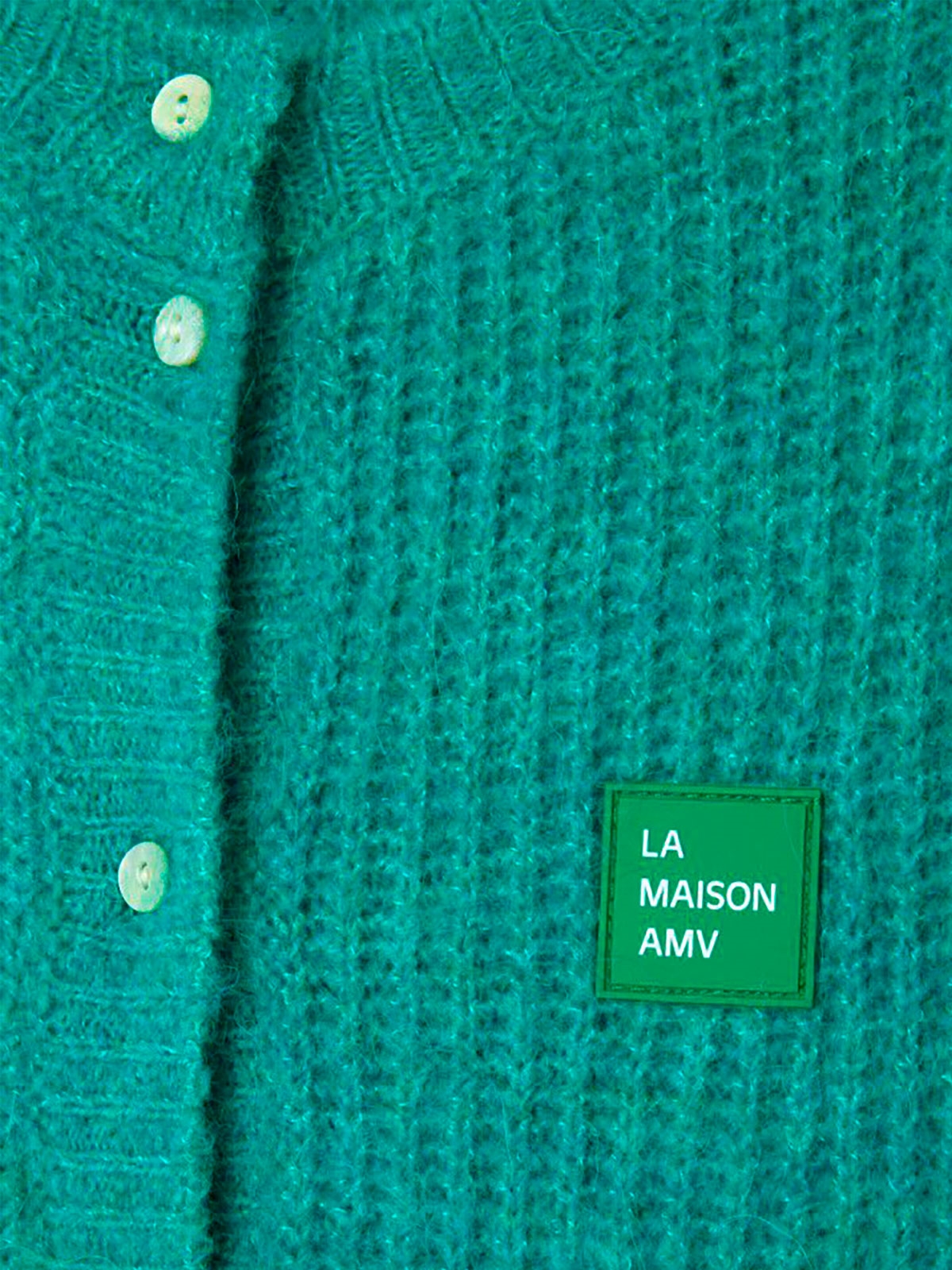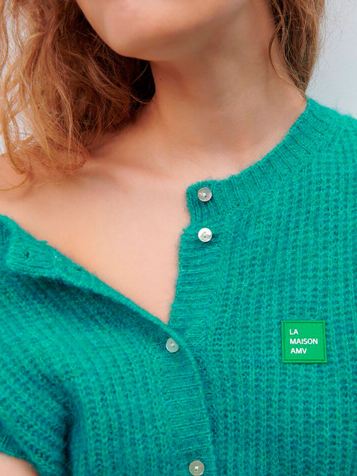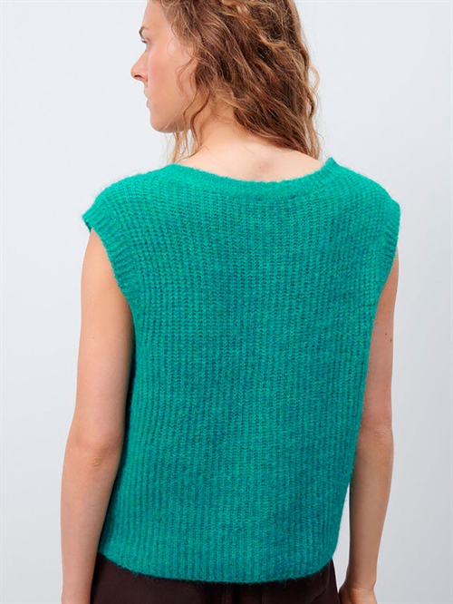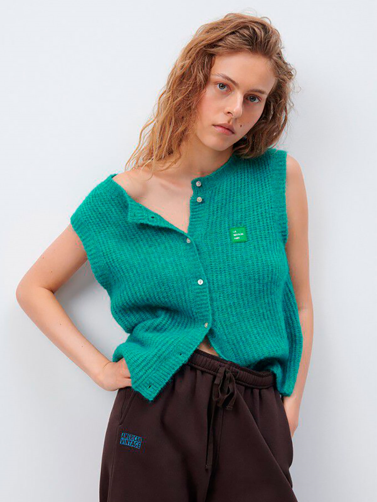 Strikket vest fra American Vintage. Strikken har rund hals, logo påsyet på brystet og den lukkes med knapper.