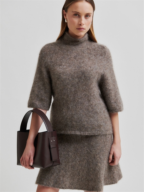 Materiale: 36% kid mohair, 36% alpaka, 25% genbrugt polyamid, 3% elasthan