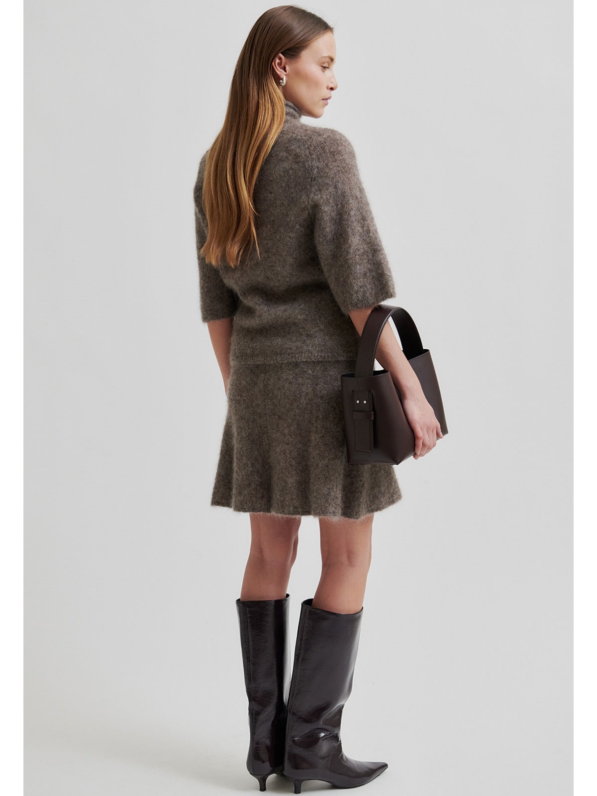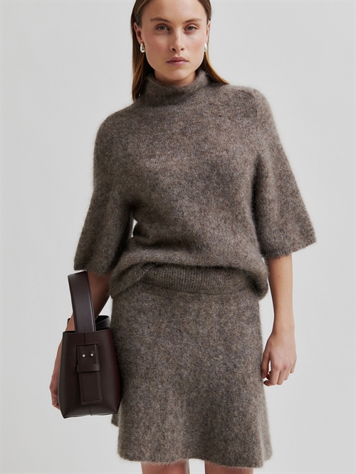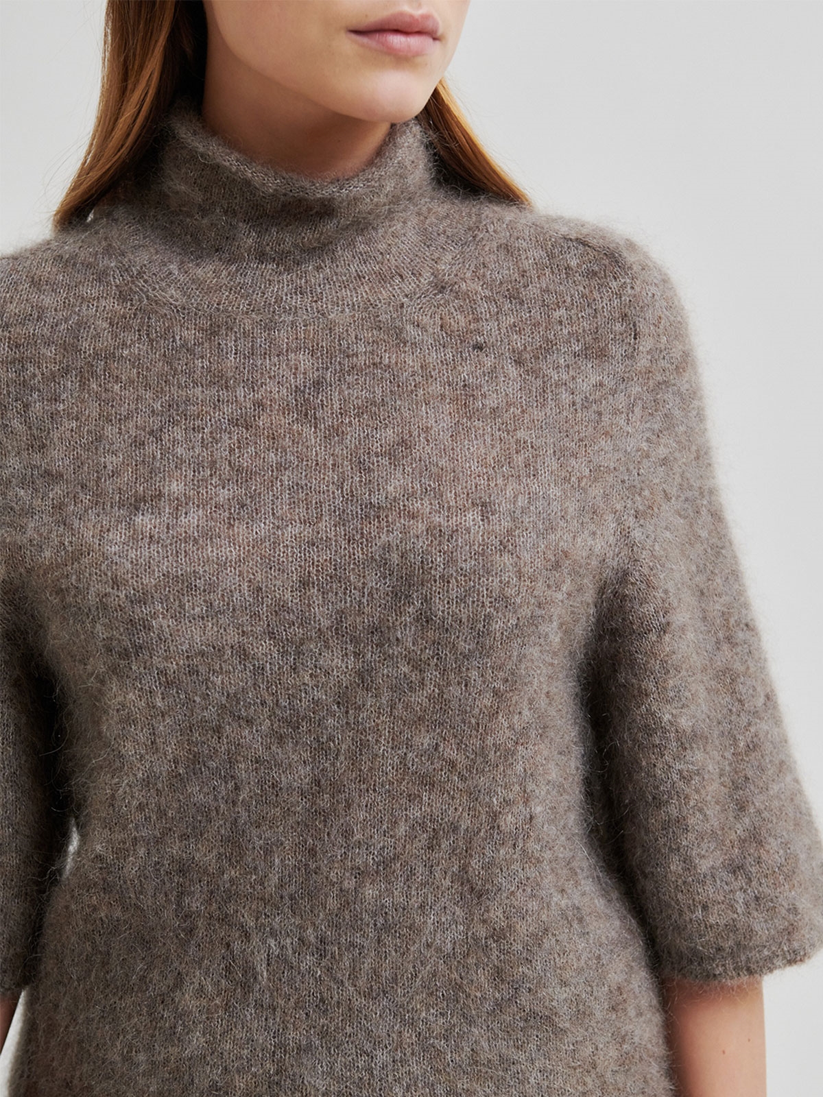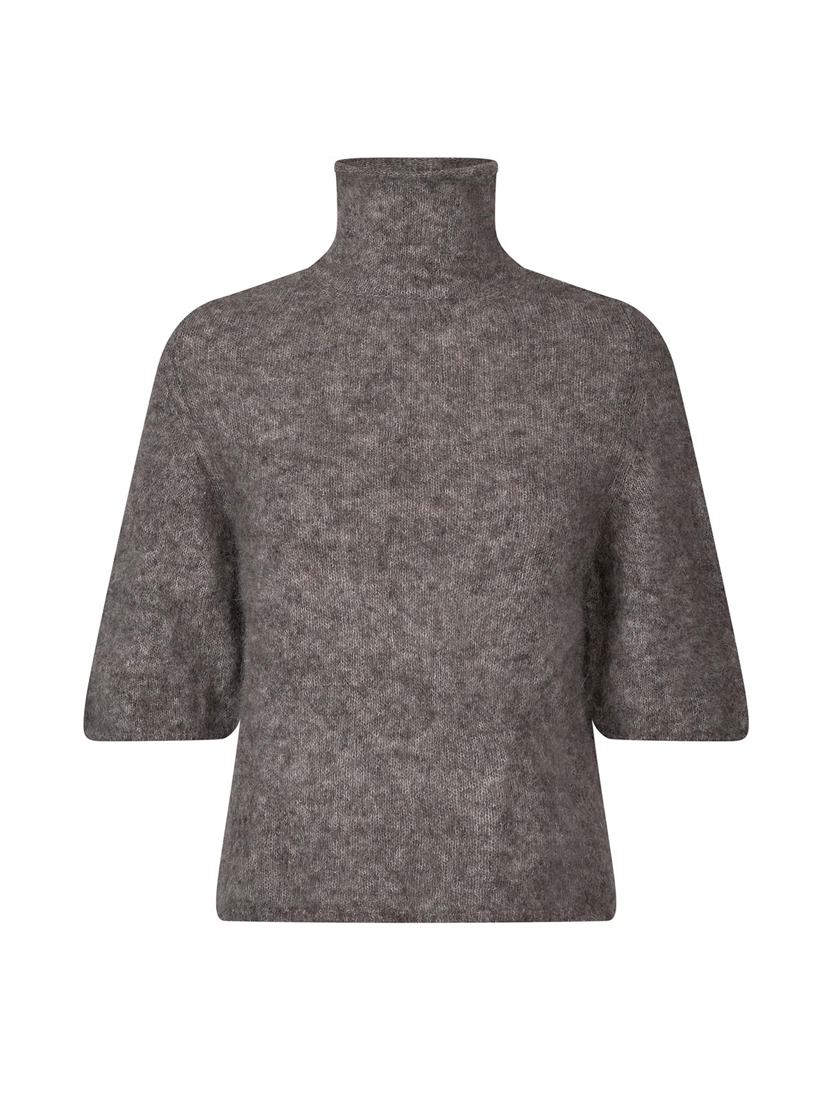 Strik fra Second Female. Strikken har høj hals og kort ærmer.
