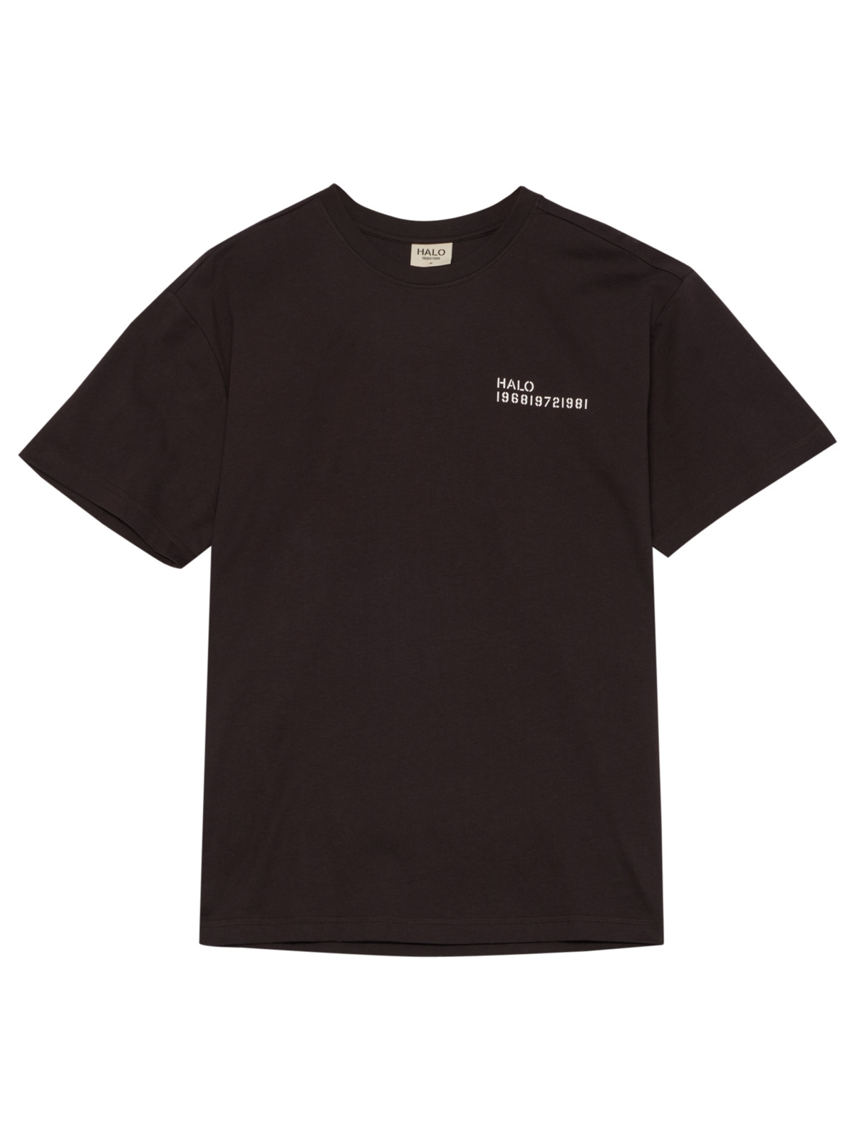 T-shirt fra HALO. T-shirten har rund hals og korte ærmer. Den har logo på brystet samt lille print på ryggen