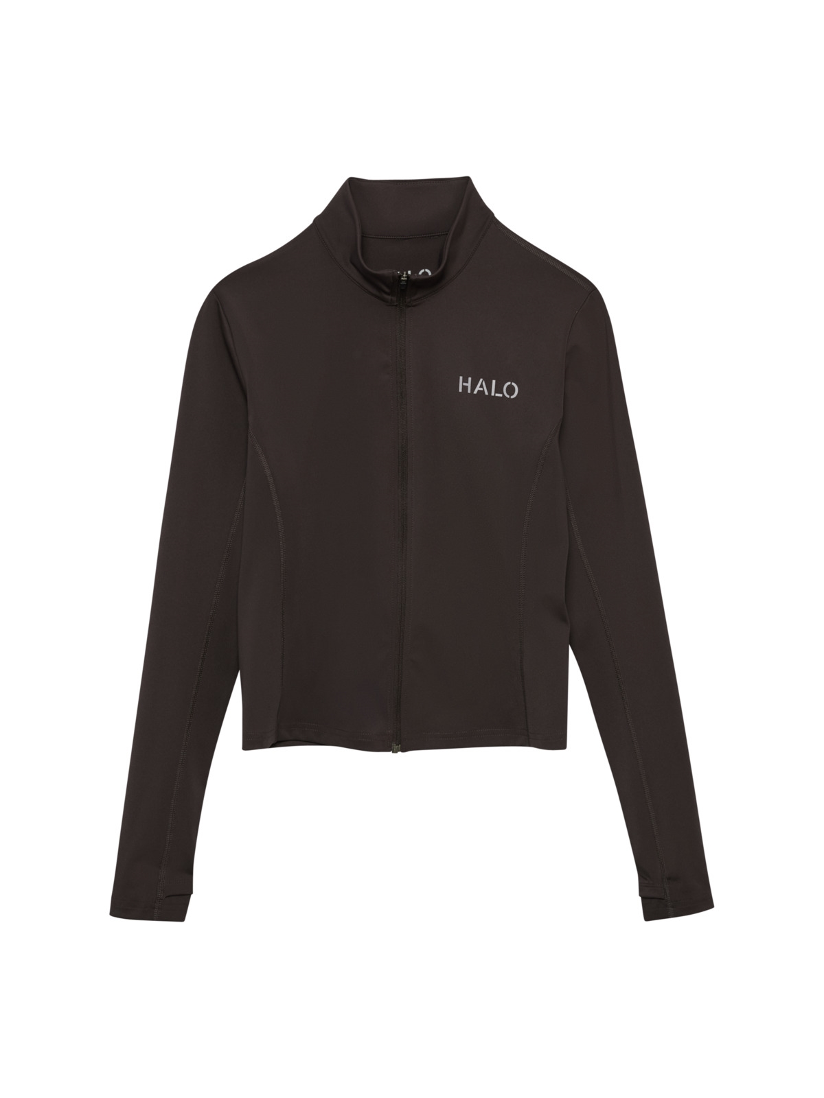 Trænings top fra HALO. Trøjen har høj hals, lange ærmer og lukkes med lynlås. Tætsiddende pasform.