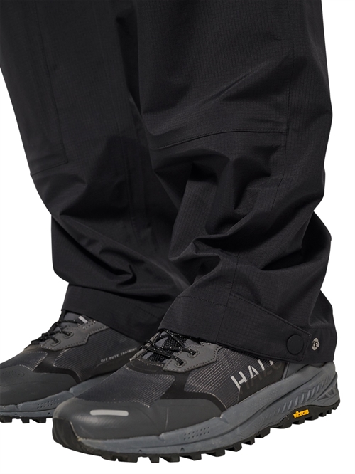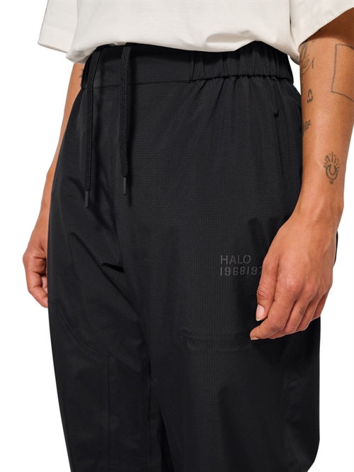 Vindtætte og vandafvisende bukser fra HALO. Bukser er i 3-lags materiale med tapede sømme samt elastik og snøre i taljen. De har en fluorinfri BIONIC-FINISH® ECO behandling, som beskytter effektivt mod regn og fugt. De er vandtætte med 15.000 mm vandsøjletryk og har en høj åndbarhed på 10.000 g/m². Bukserne har logo print på låret og velcrolukning ved anklerne.