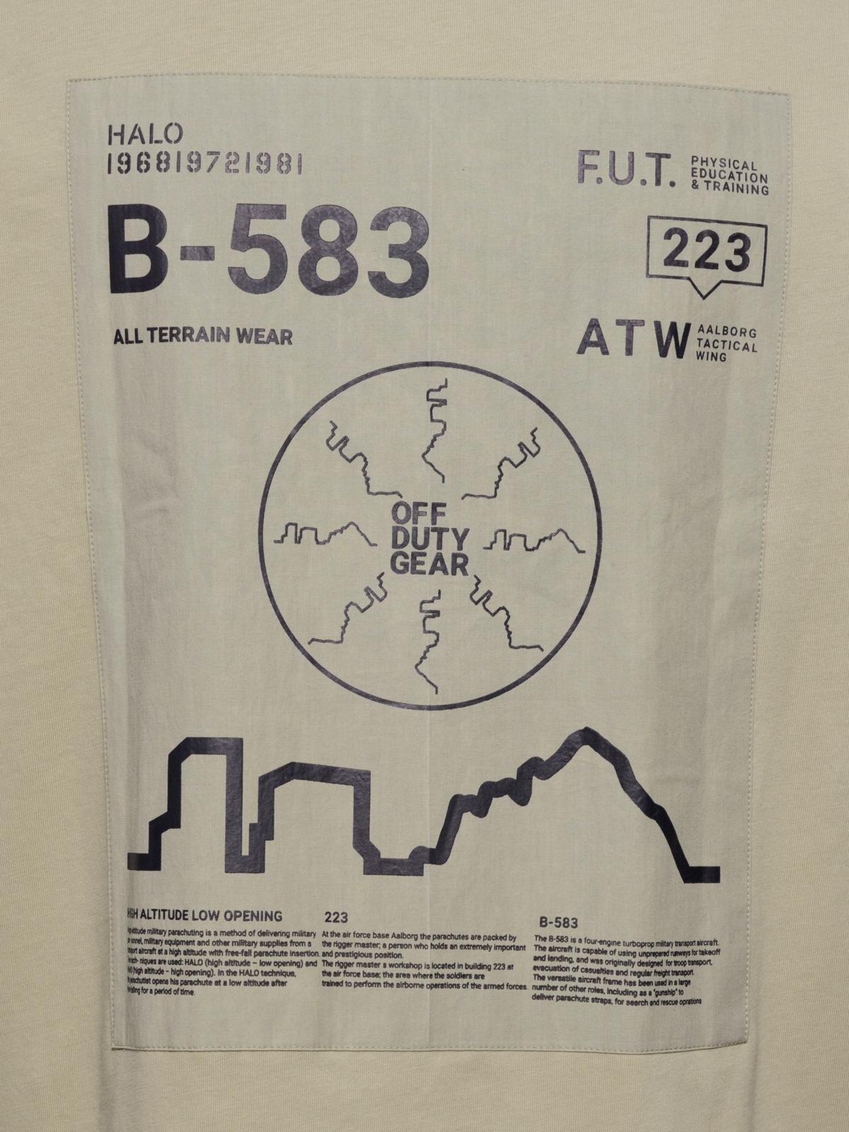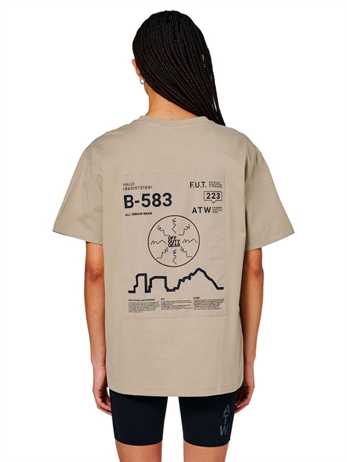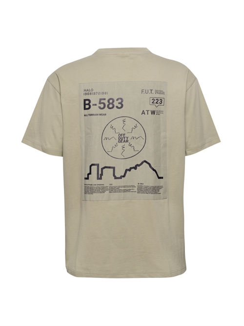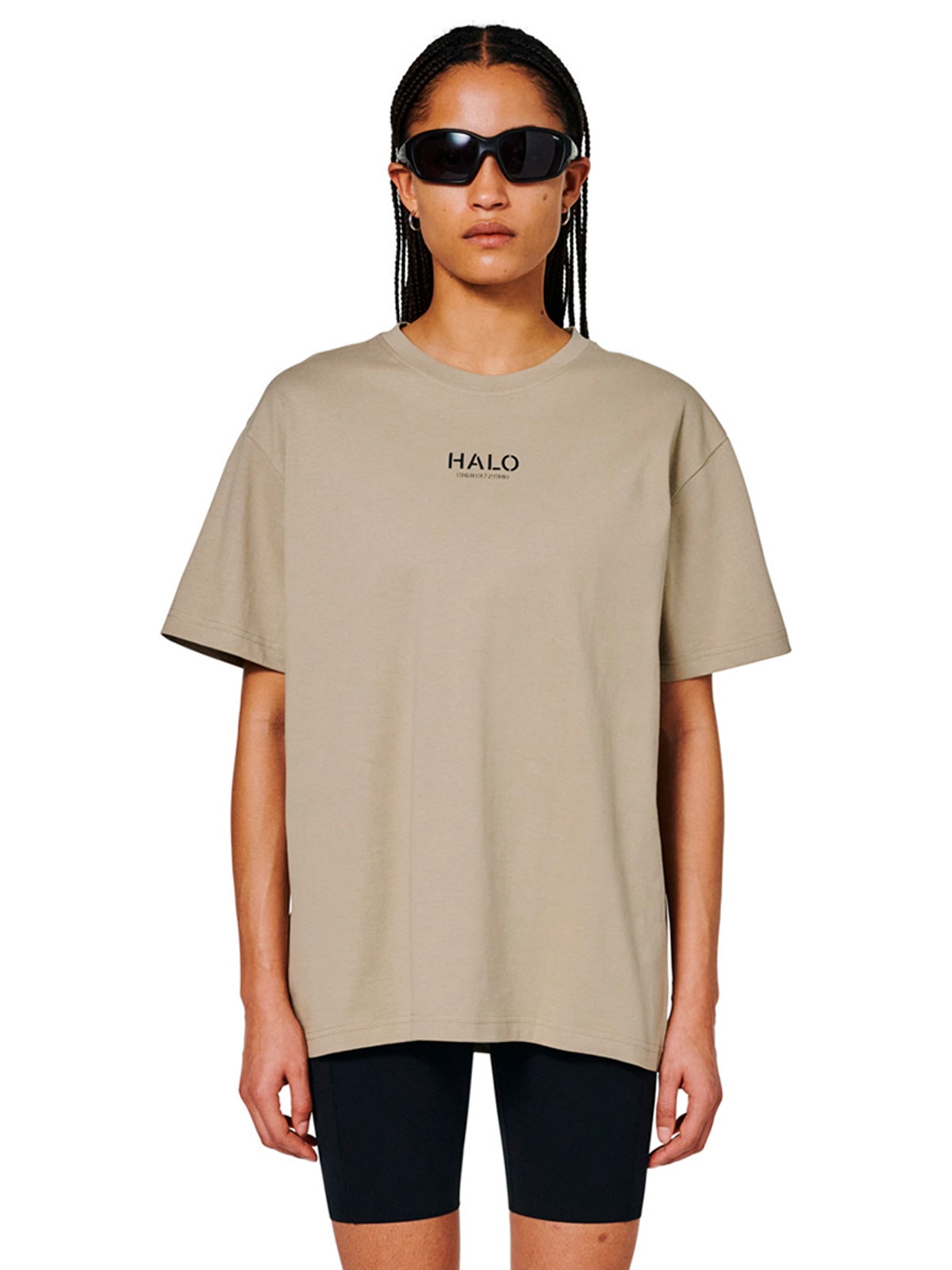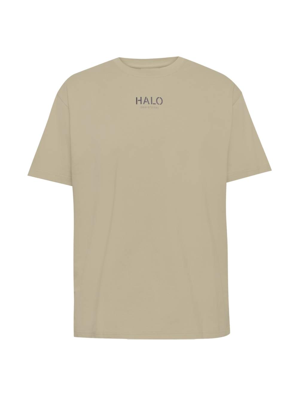 T-shirt fra HALO. T-shirten har rund hals og korte ærmer. Den har logo print på brystet og stort tryk på ryggen