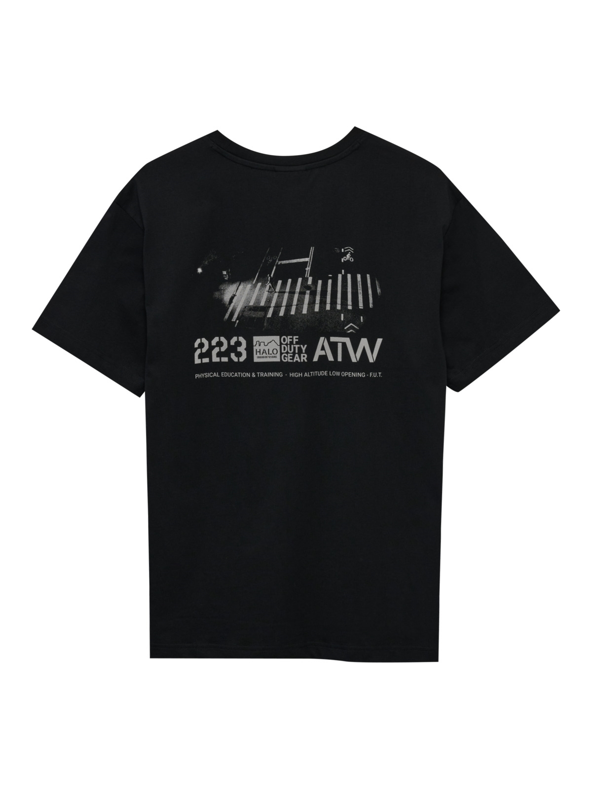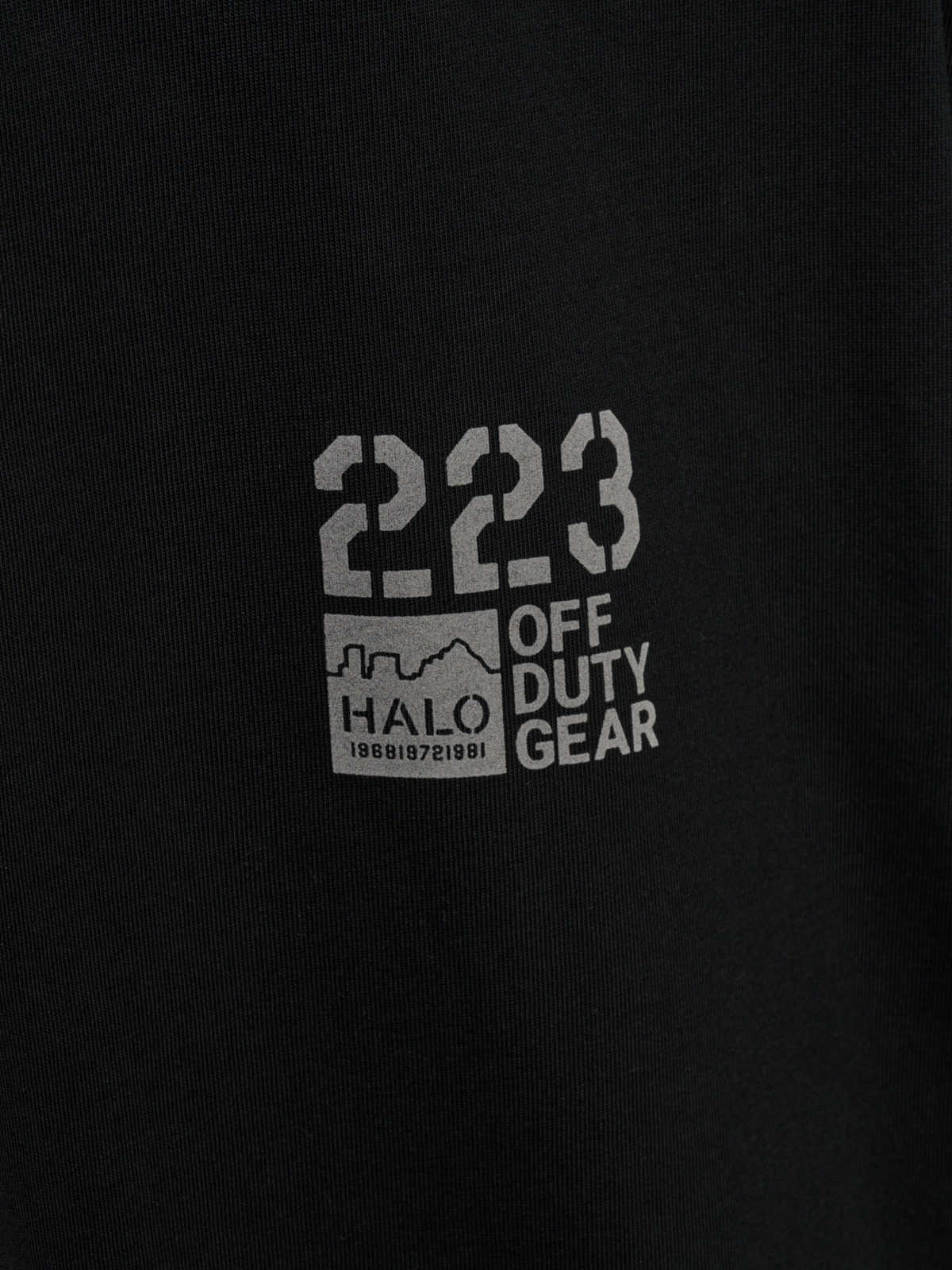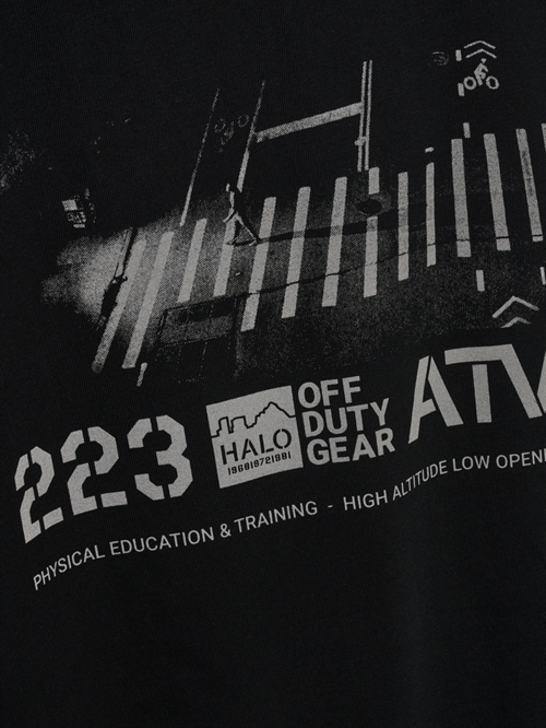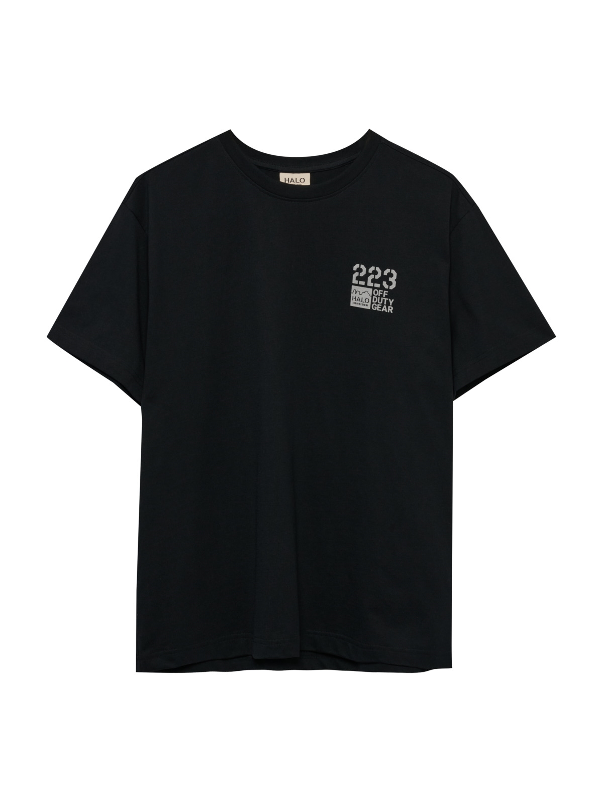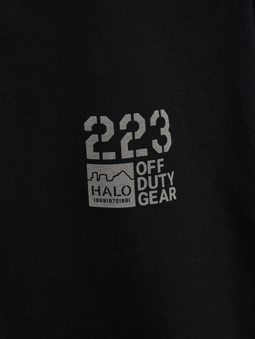 T-shirt fra HALO. T-shirten har rund hals og korte ærmer. Den har logo print på brystet og stort tryk på ryggen