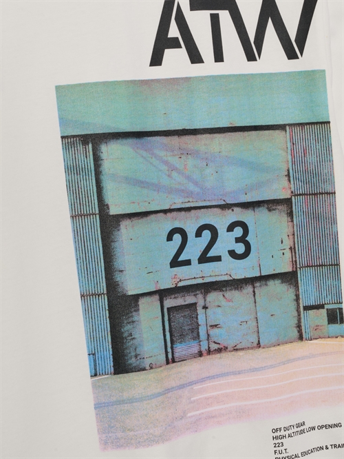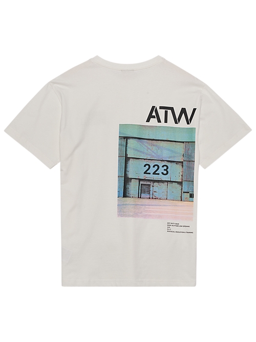 T-shirt fra HALO. T-shirten har rund hals og korte ærmer. Den har logo print på brystet og stort tryk på ryggen