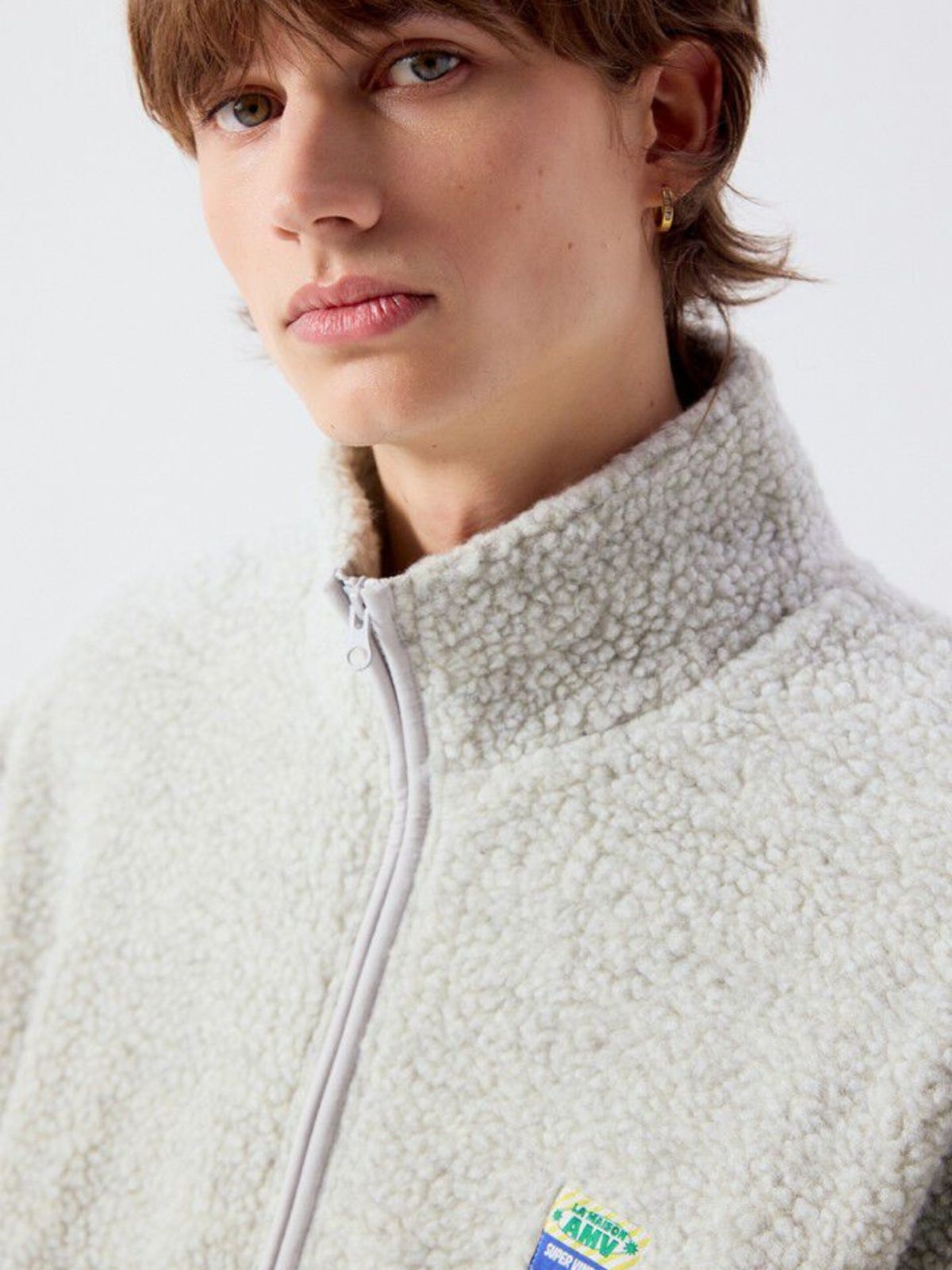 Plys jakke fra American Vintage. Jakken har høj hals og lukkes med lynlås. Den har lommer i siderne og logo på brystet.
