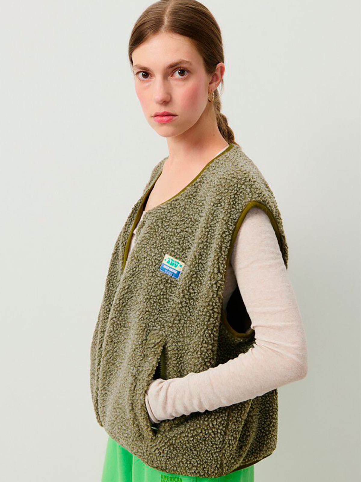 Vest fra American Vintage. Vesten har v-hals og lukkes med lynlås. Den har lommer i siderne og logo på brystet.