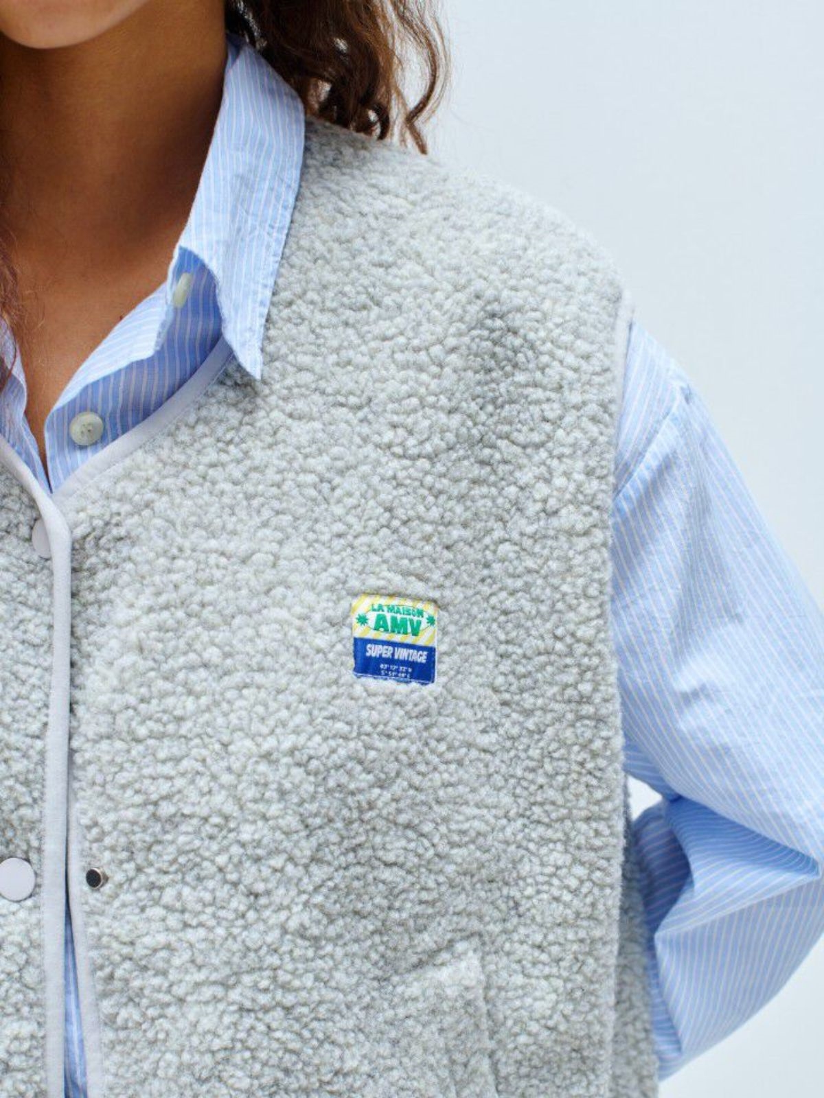 Vest fra American Vintage. Vesten har v-hals og lukkes med knapper. Den har lommer og logo på brystet