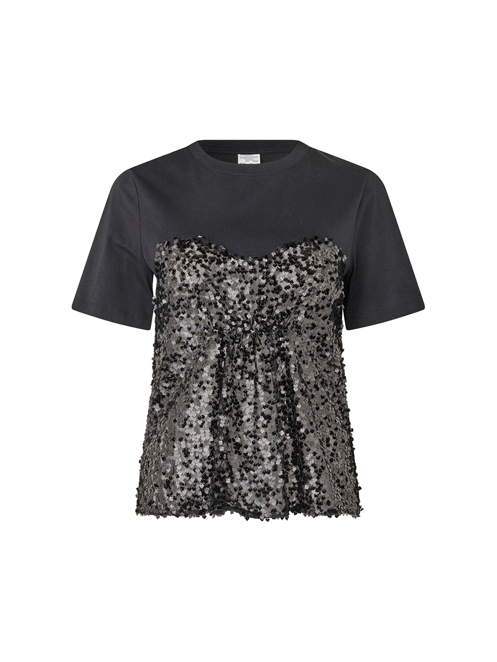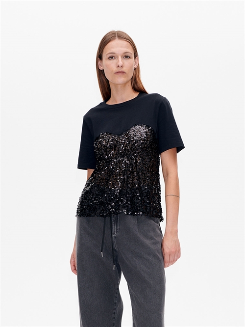 T-shirt fra Baum Und Pferdgarten. T-shirten har rund hals, korte ærmer og palietter. Normal pasform.