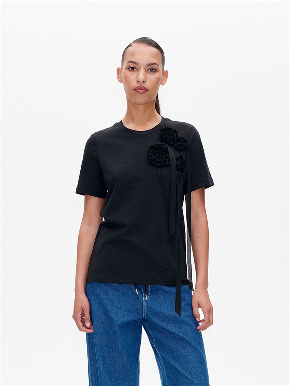 T-shirt fra Baum Und Pferdgarten. T-shirten har rund hals, korte ærmer og rosetter på brystet. Normal pasform.