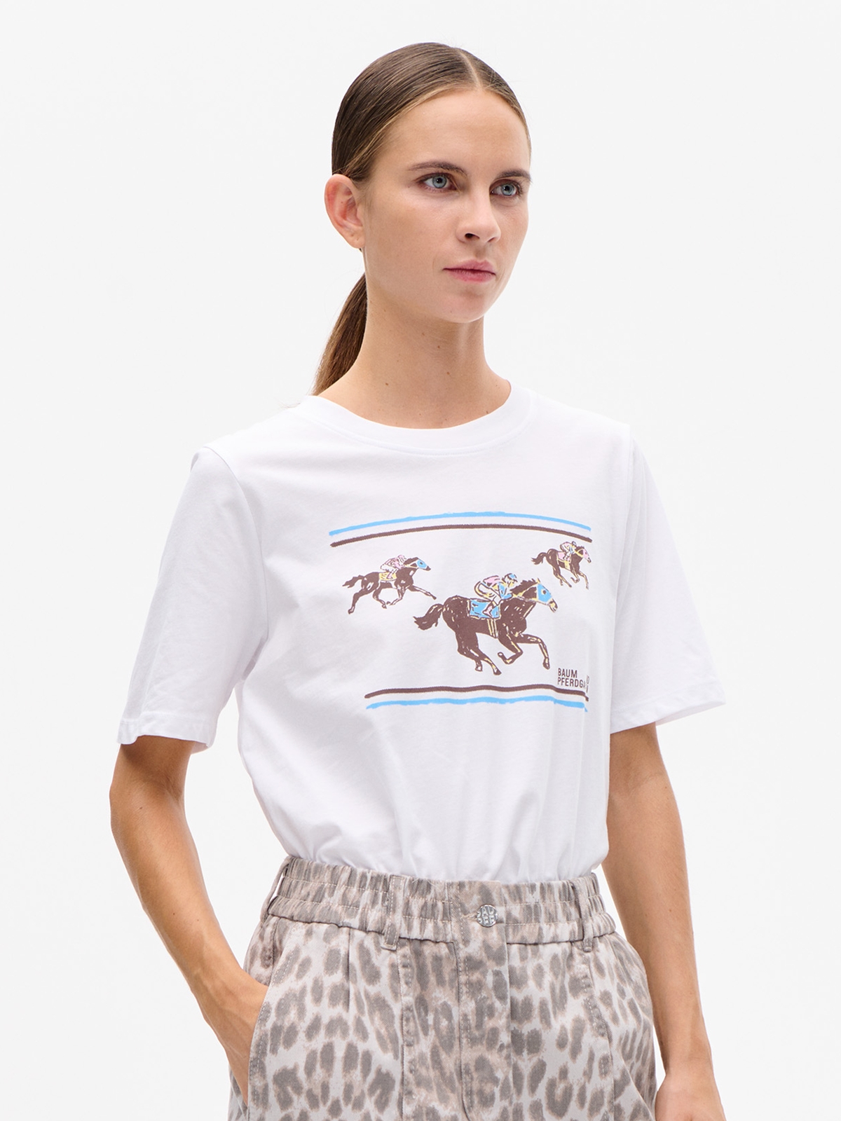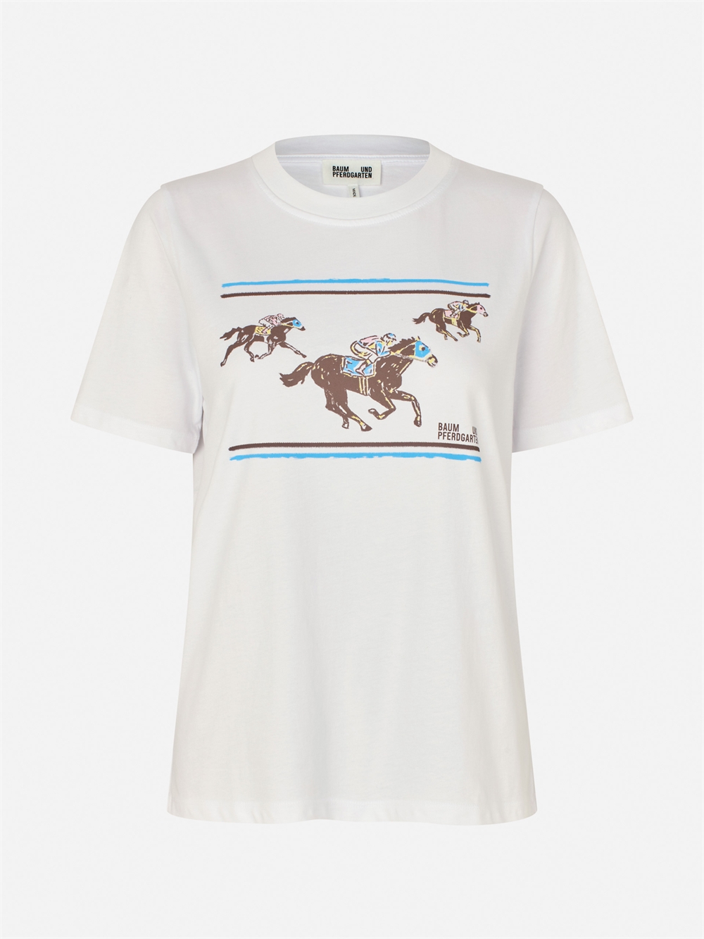 T-shirt fra Baum Und Pferdgarten. T-shirten har rund hals, korte ærmer og tryk på brystet. Normal pasform.