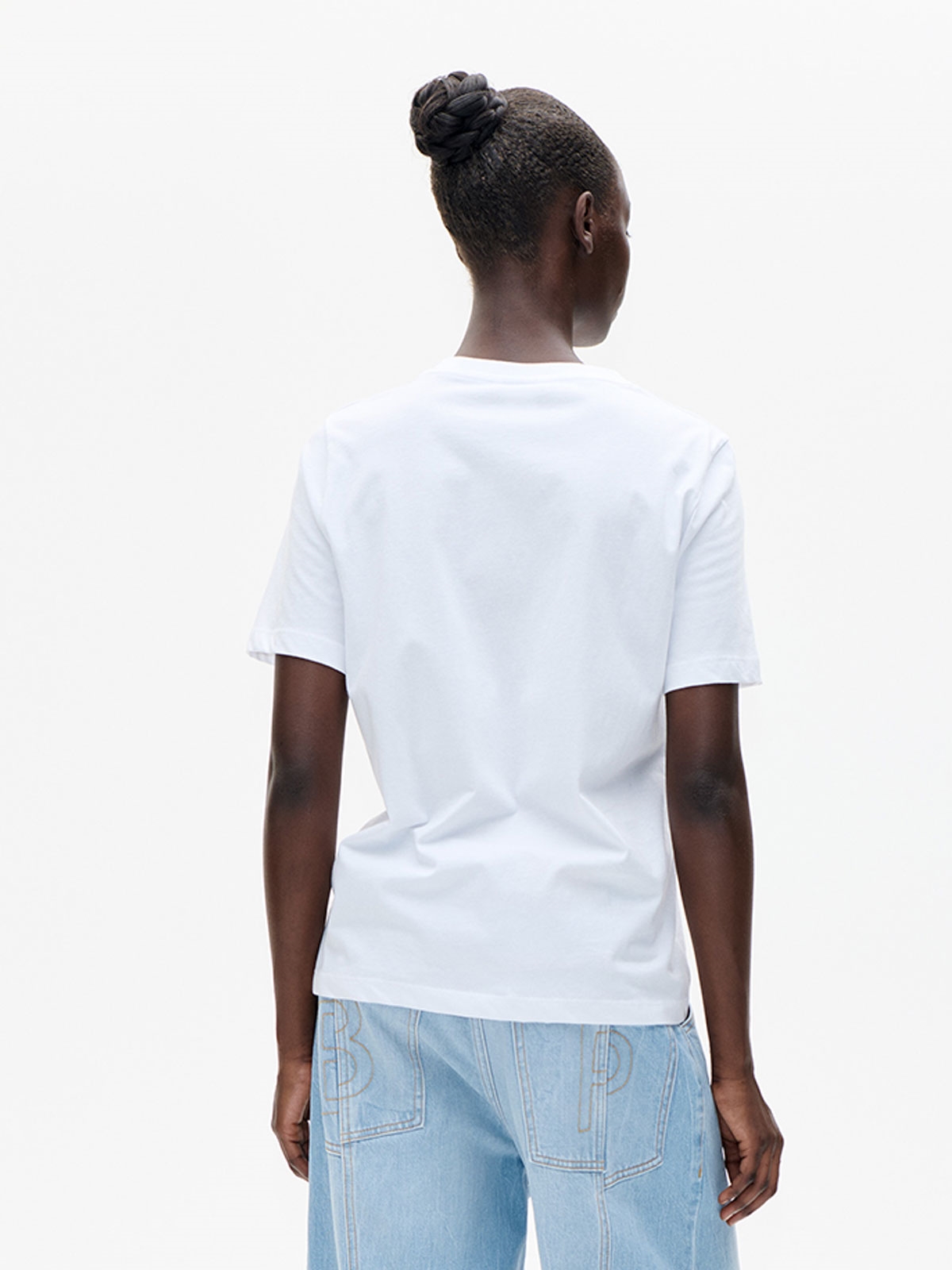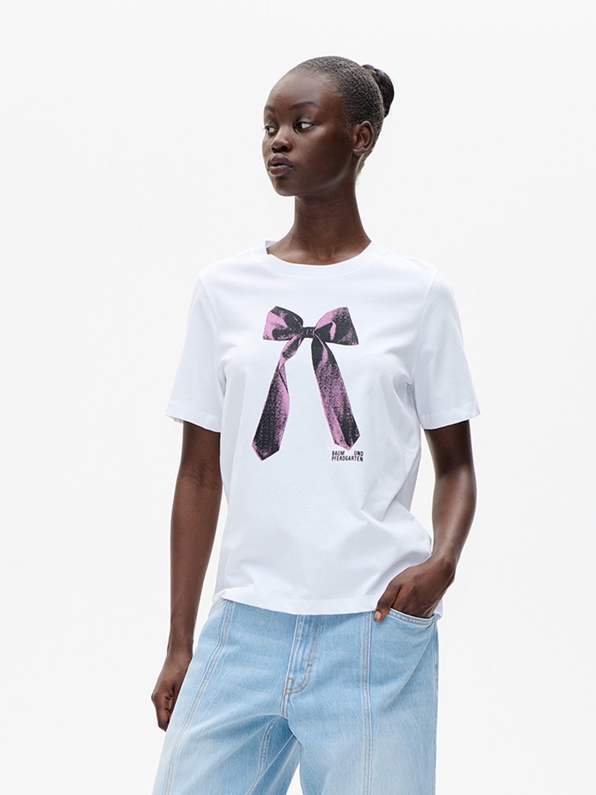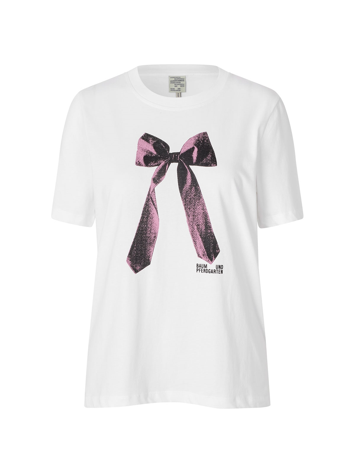 T-shirt fra Baum Und Pferdgarten. T-shirten har rund hals, korte ærmer og sløjfe trykt på brystet. Normal pasform.