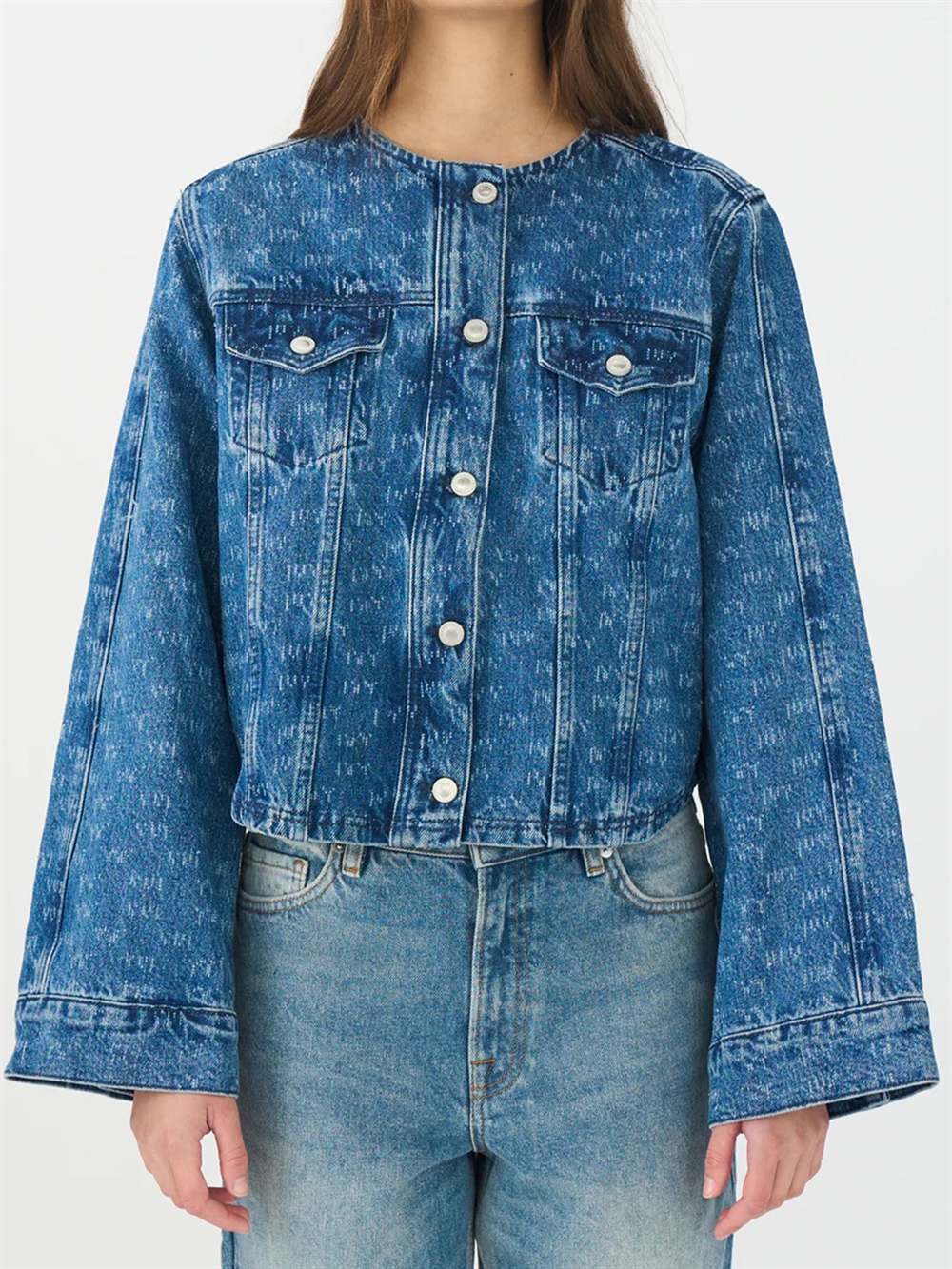 Denim jakke fra IVY Copenhagen. Jakken har rund hals, vide ærmer samt brystlommer. Den lukkes med knapper. Almindelig pasform.