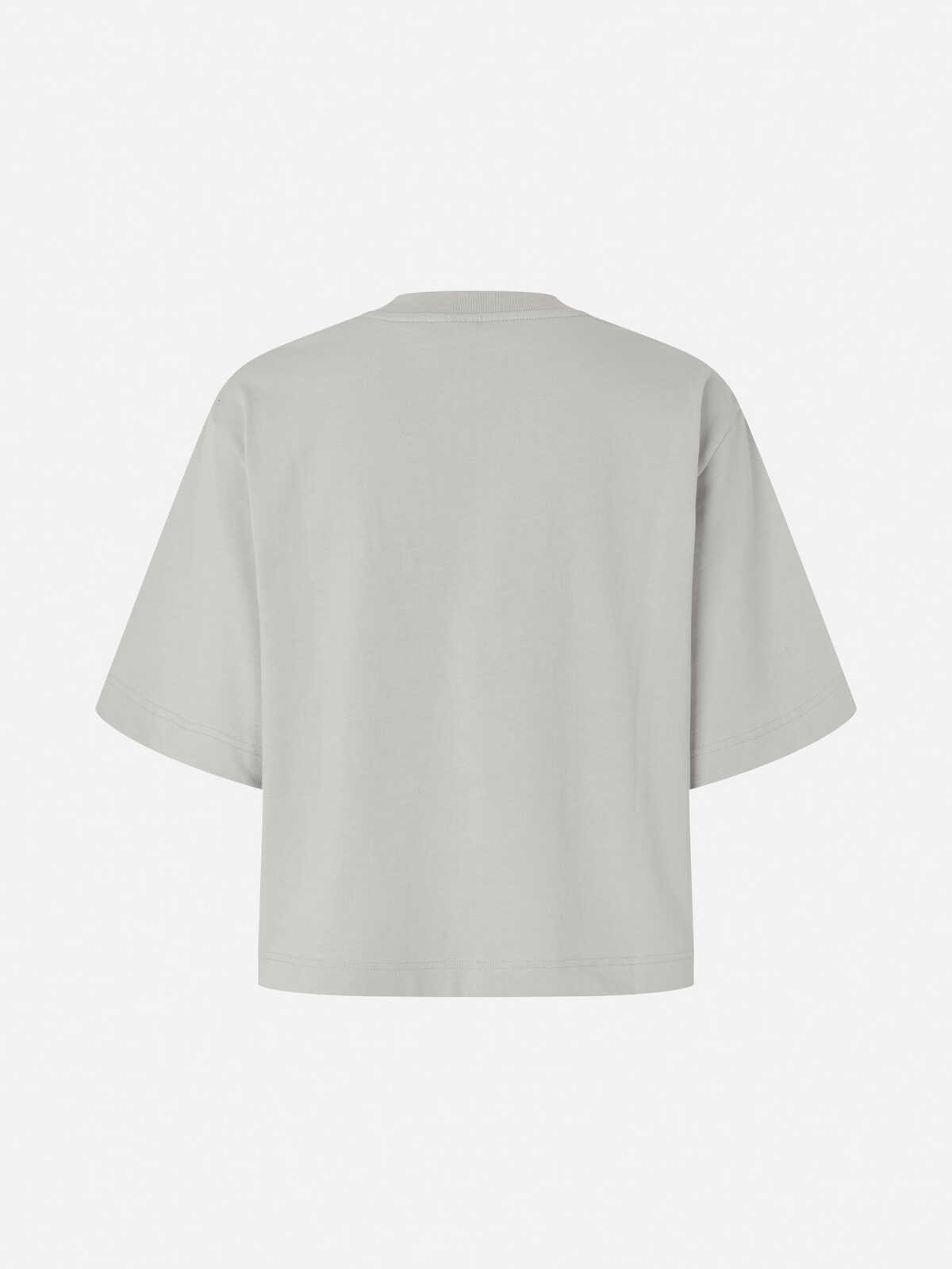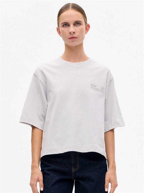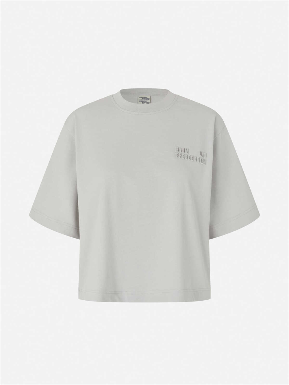 T-shirt fra Baum Und Pferdgarten. Blusen har korte off-shoulder ærmer og præget logo på brystet. Den har en løs kort oversize pasform og lavet i en tung og blød økologiske bomuld.