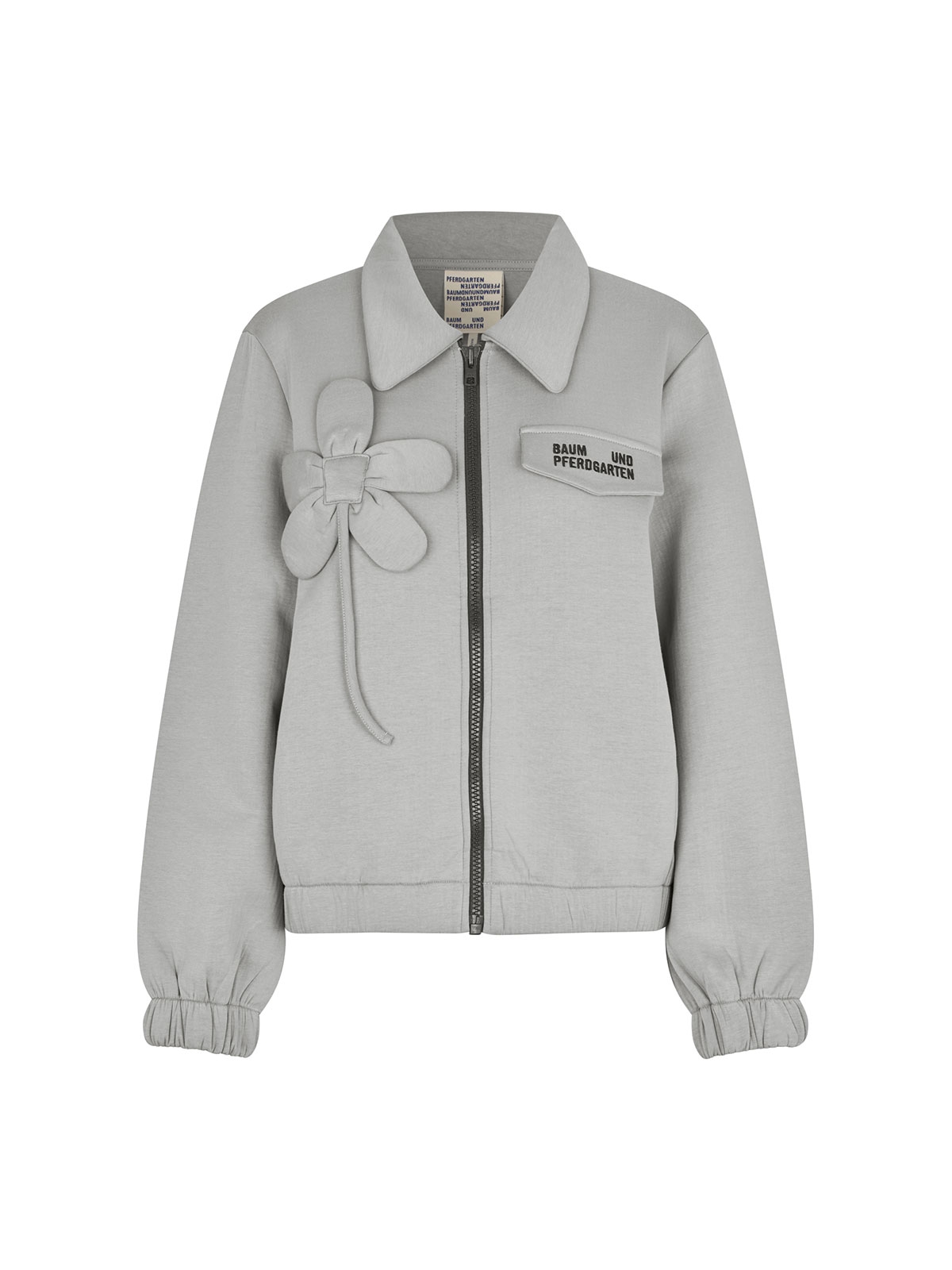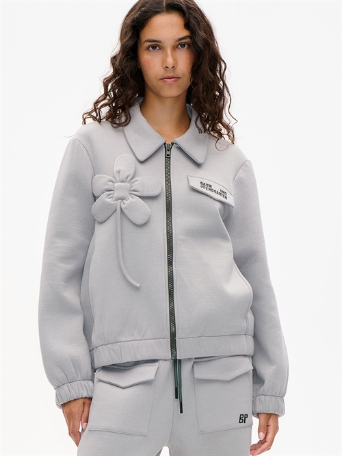 Jakke fra Baum Und Pferdgarten. Jakken har krave og den lukkes med lynlås. Den har lommer i siderne, logo på brystet og påsyet blomsterdetalje. Løs pasform.