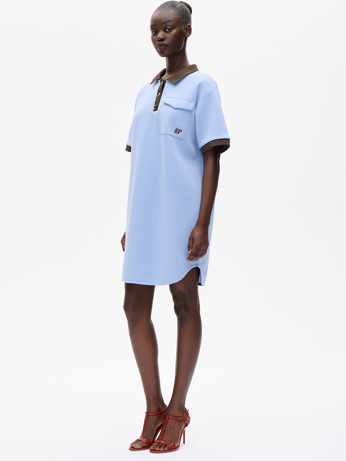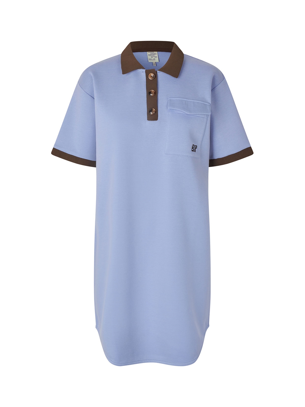 Kjole i tyk økologisk bomuldsblanding fra Baum Und Pferdgarten. Kjolen har krave og stolpelukning med knapper. Den har en påsyet brystlomme og korte ærmer. Løs pasform.