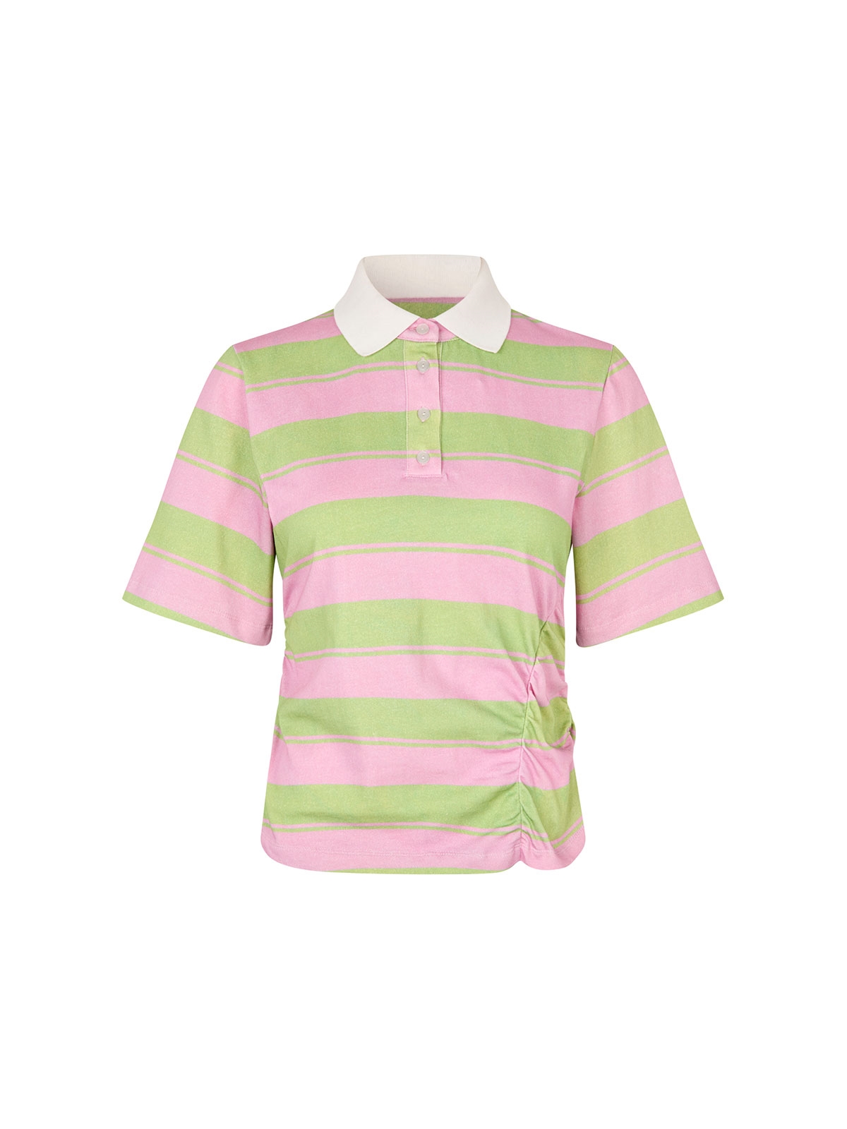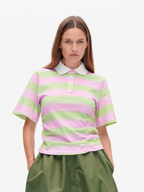 Polo fra Baum Und Pferdgarten. T-shirten har krave, korte ærmer og stolpelukning. Den har elastik i siden for et mere fitted look. Almindelig pasform.