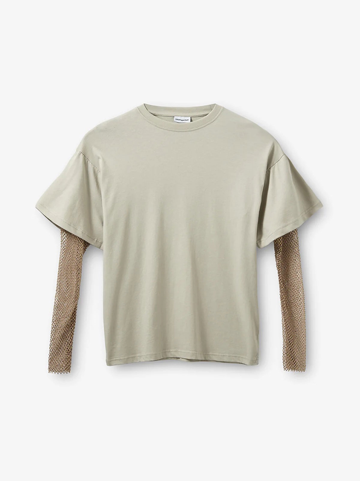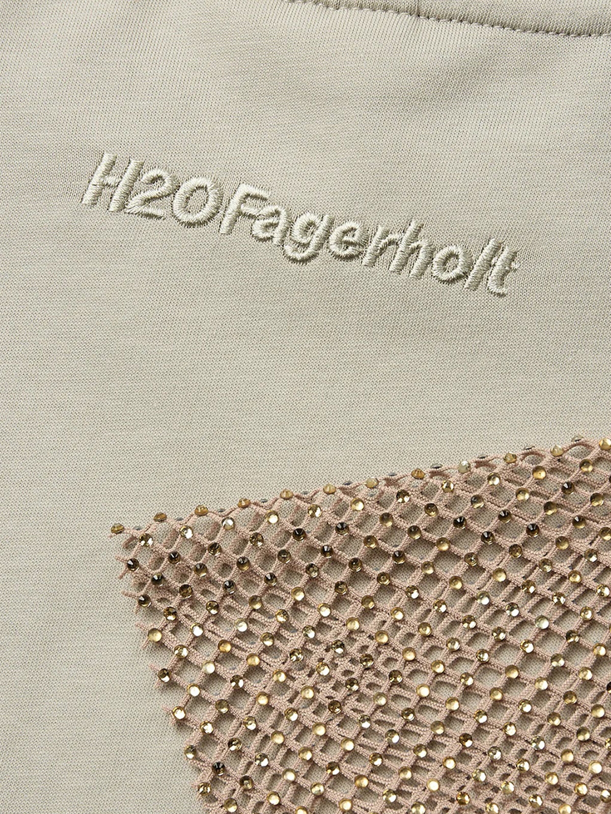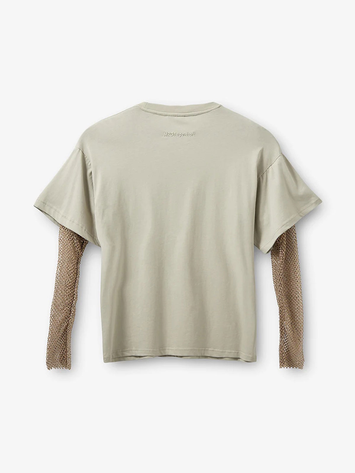 T-shirt fra H2OFagerholt. T-shirten har rund hals og korte ærmer med lange påsyede net ærmer besat med sten  Den har broderet logo i nakken. Normal pasform.