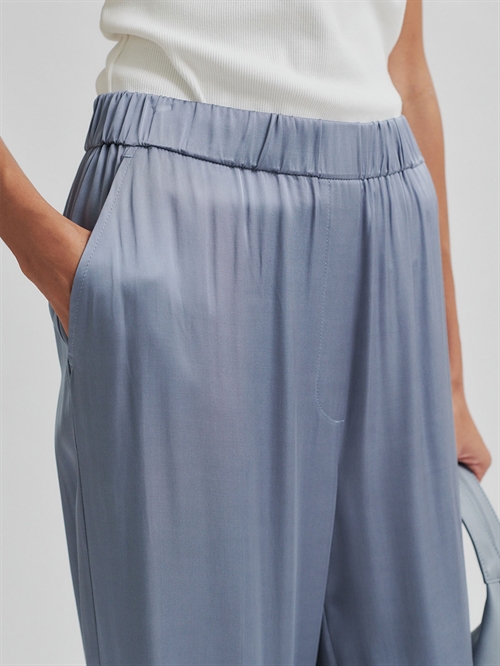 Bukser fra Second Female. Bukserne har elastik i taljen og to sidelommer. De har lige vide ben og afslappet pasform.