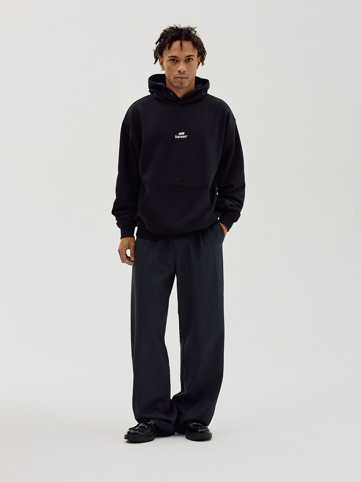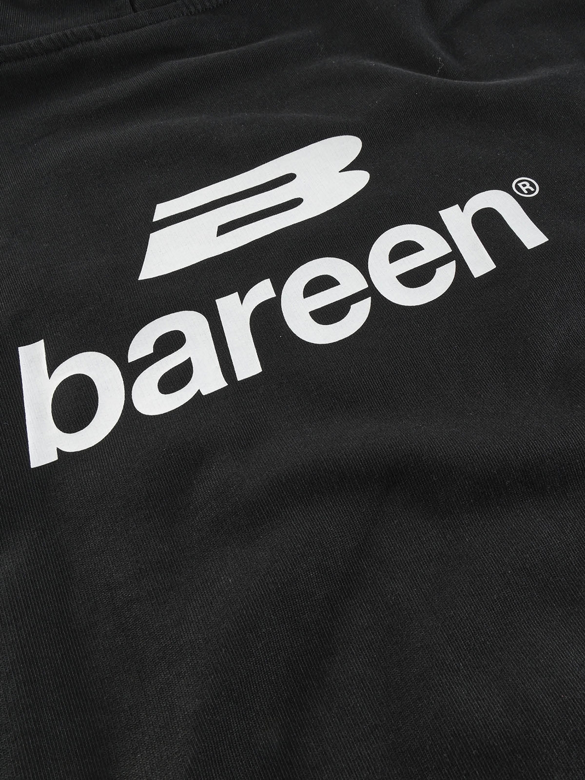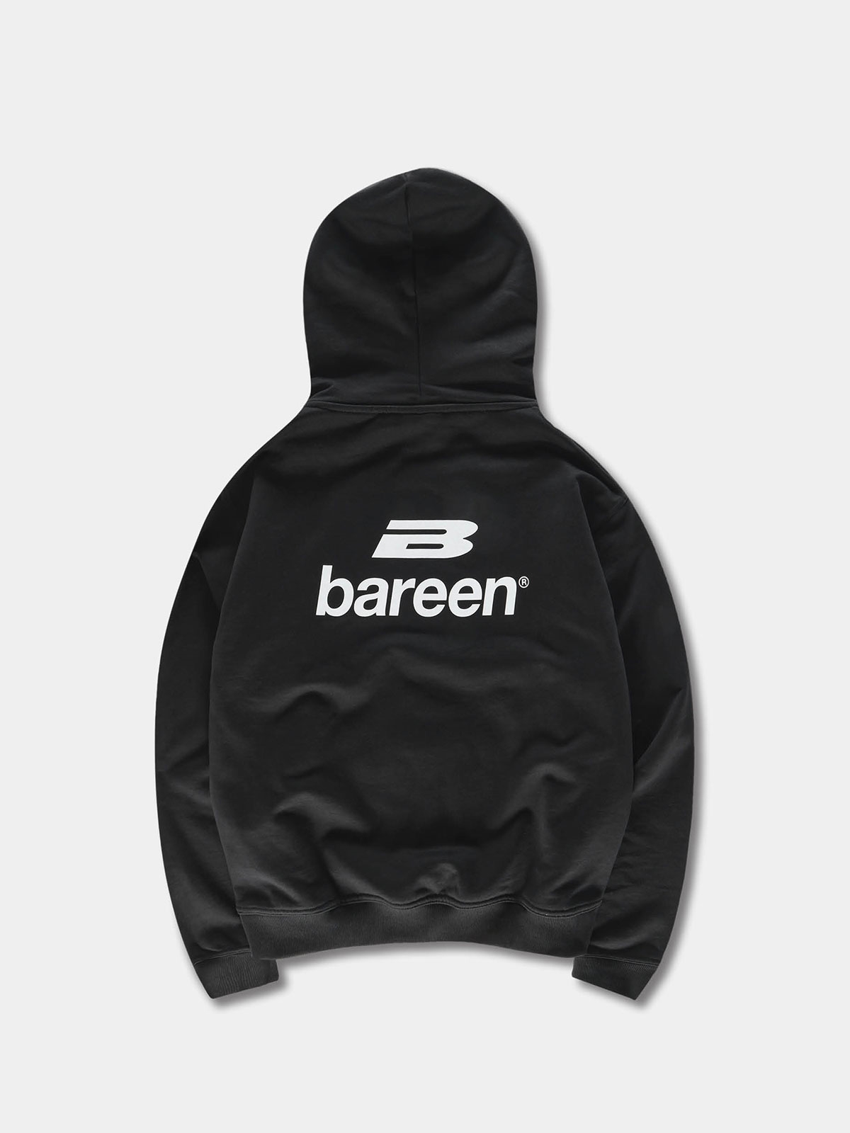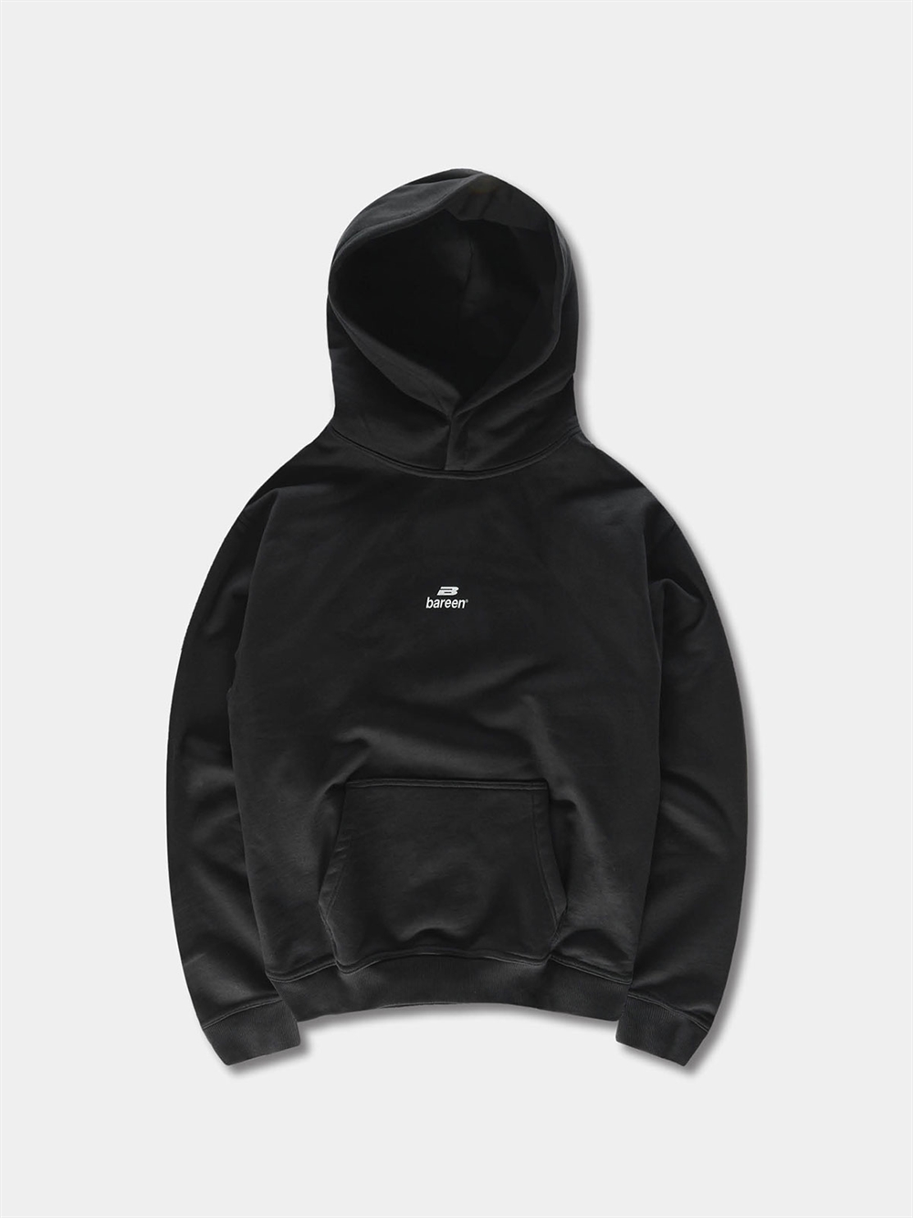Hoodie fra Bareen. Denne hoodie har lange ærmer og hætte med knap foran. Den har nyt logo på brystet og på ryggen. Oversized pasform.