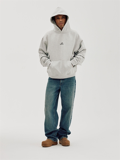 Hoodie fra Bareen. Denne hoodie har lange ærmer og hætte med knap foran. Den har nyt logo på brystet og på ryggen. Oversized pasform.