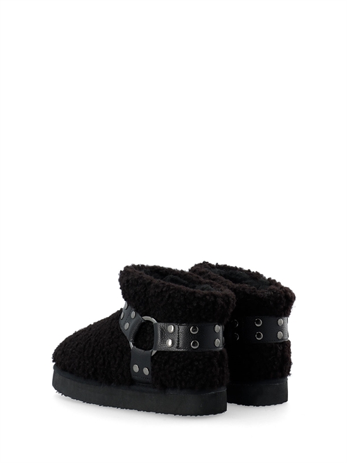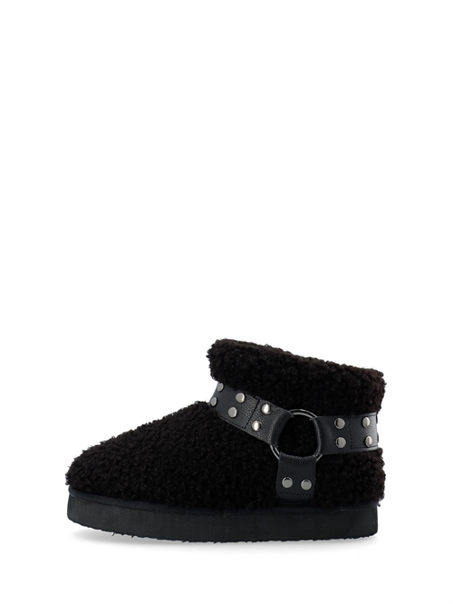 Teddy støvler fra Bianco. Støvlerne har rund snude og chunky sål (højde 2,5 cm). Støvlerne har en varm og blød inder sål samt en påsat rem med ringe og nitter udenpå. Lille i størrelsen. Vi anbefaler at gå en størrelse op.