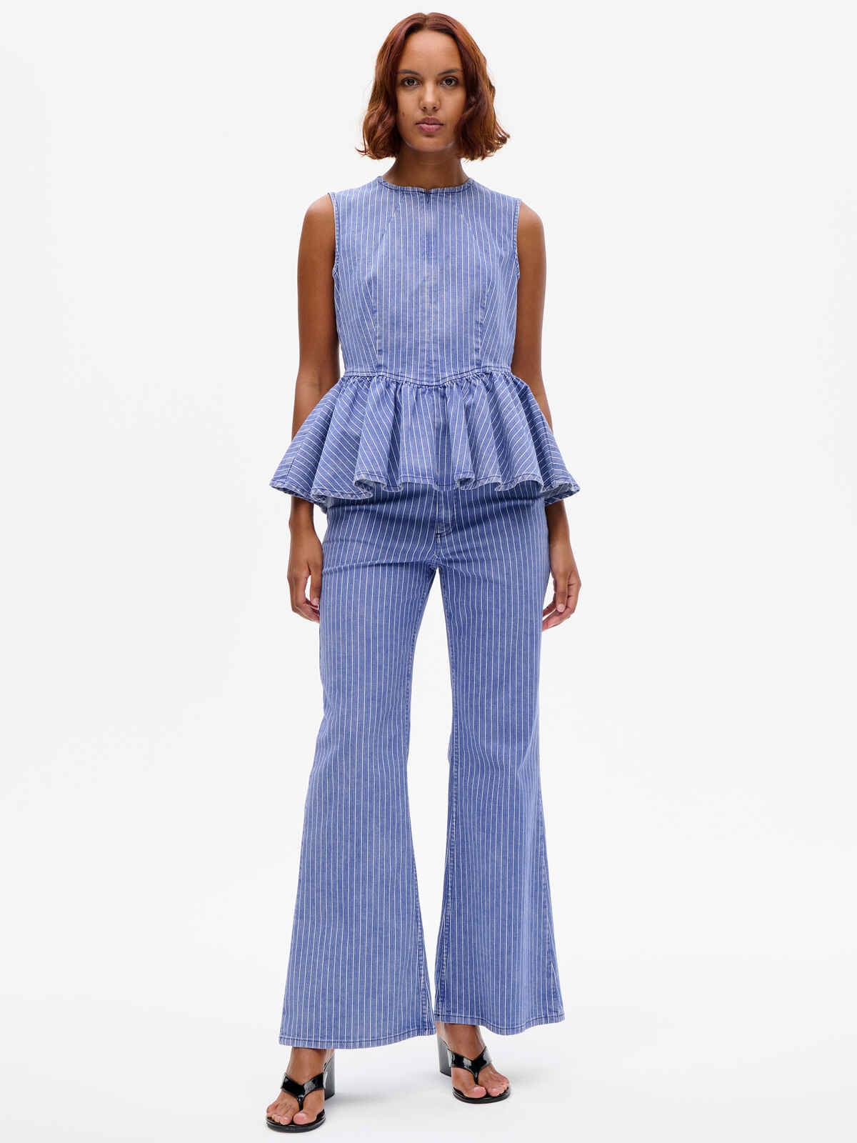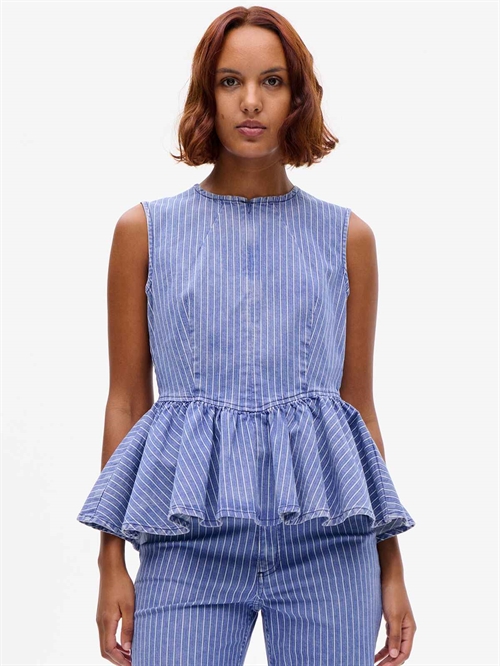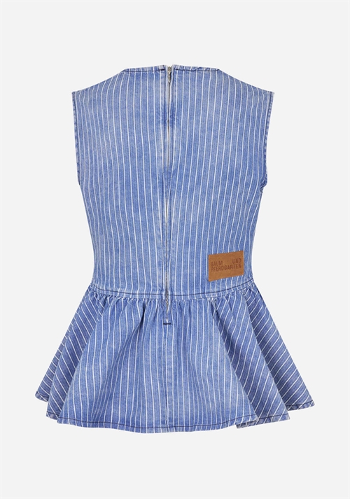 Top fra Baum Und Pferdgarten. Toppen har rund hals og den lukkes med lynlås på ryggen. Den er figursyet i taljen og har peplum-skørt. Den har påsyet lædermærke med logo på ryggen. Afslappet pasform.