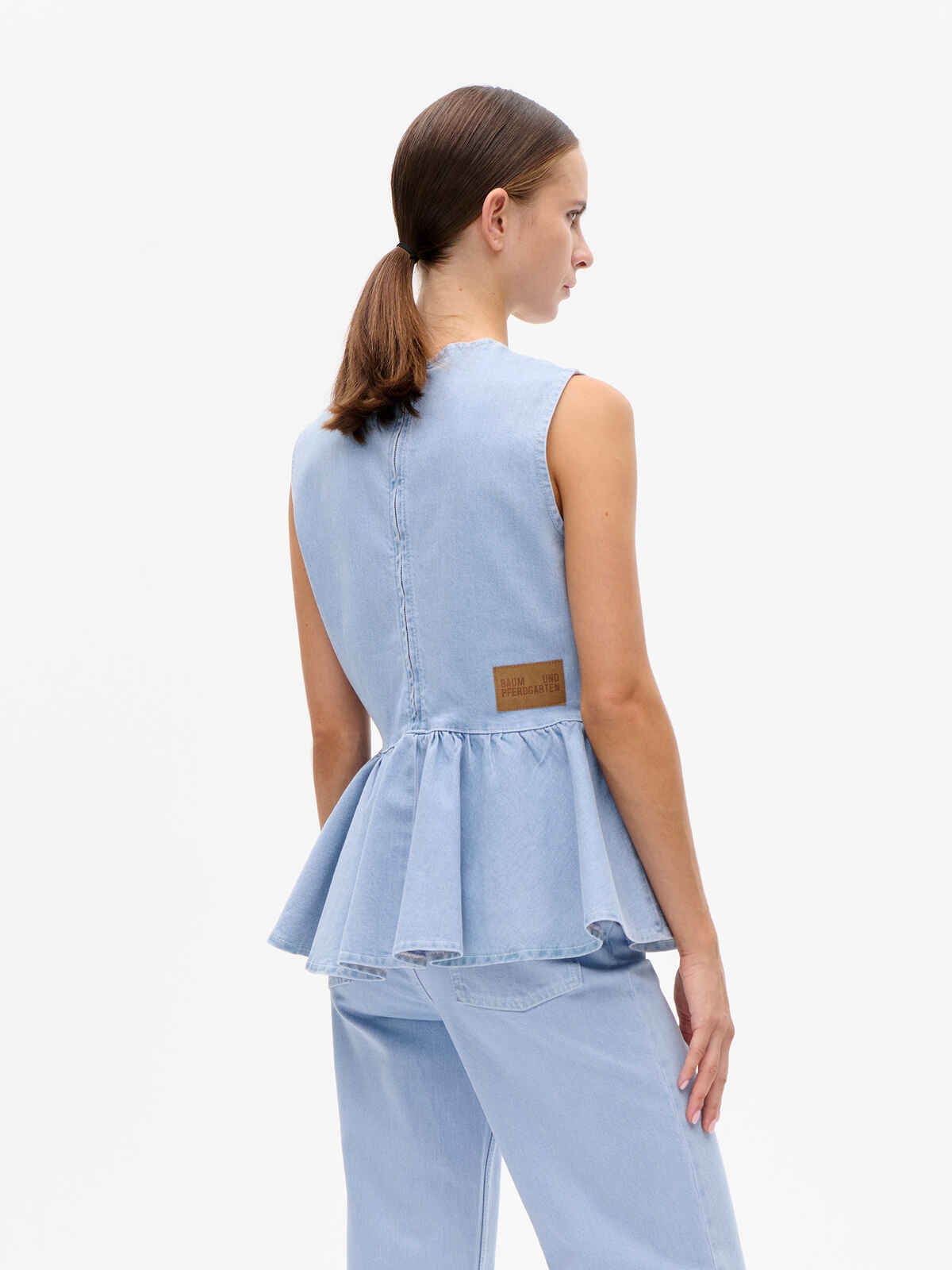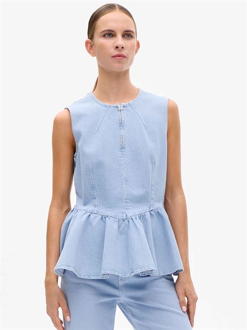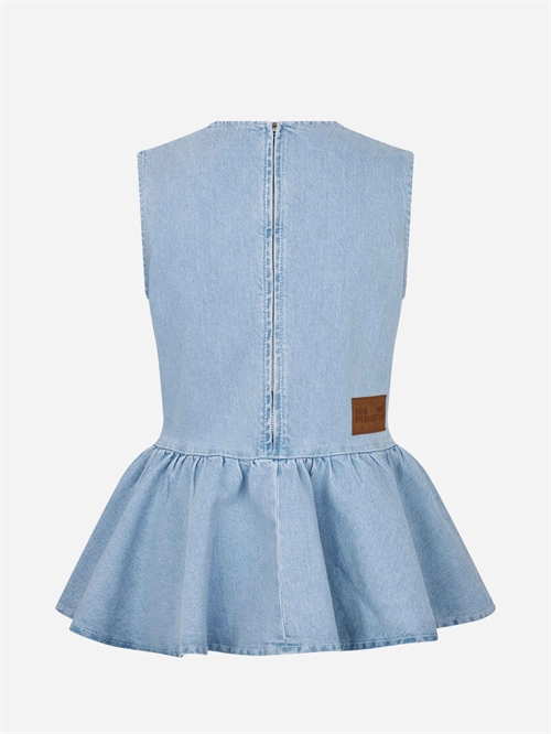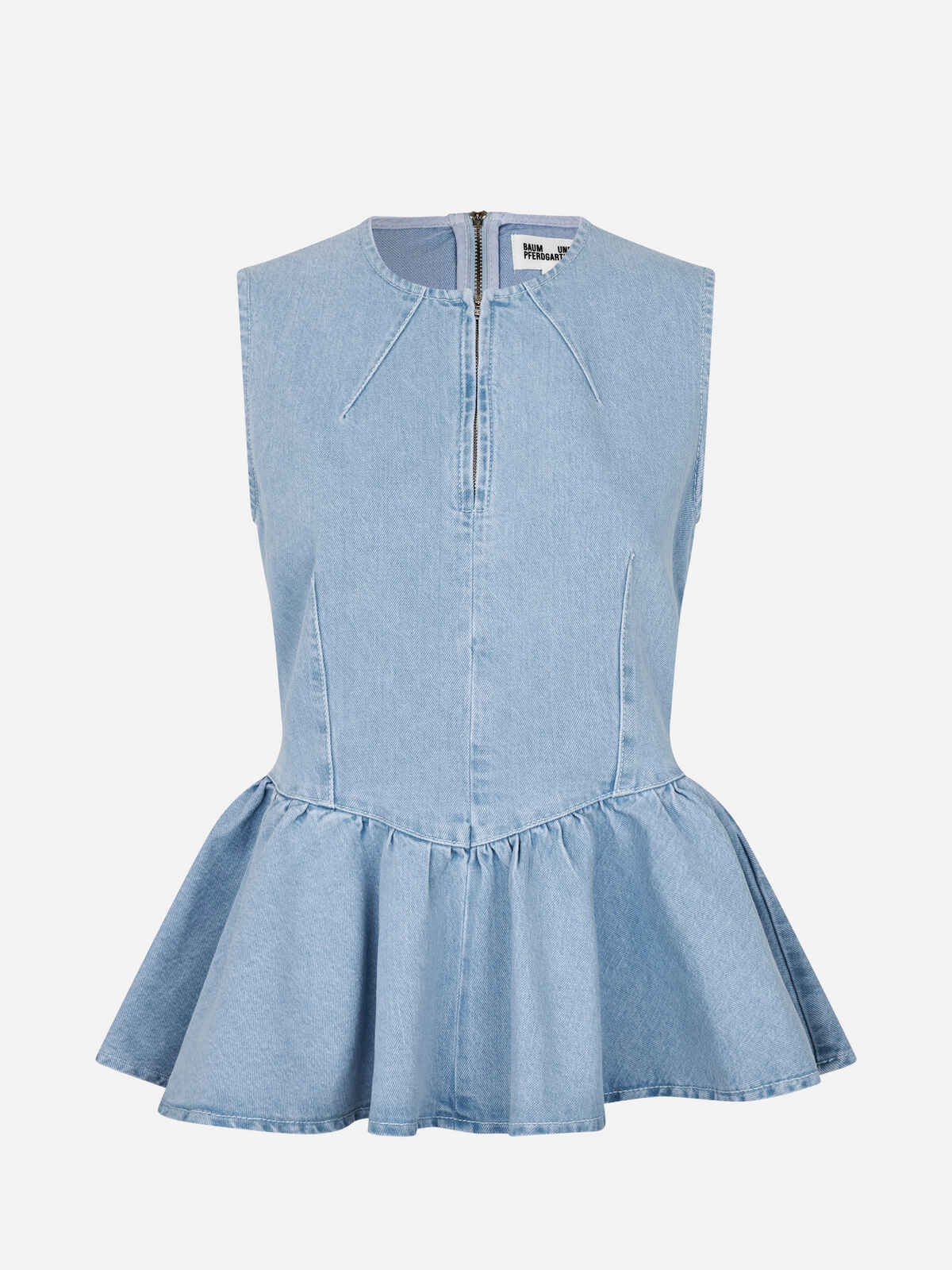 Top fra Baum Und Pferdgarten. Toppen har rund hals og den lukkes med lynlås på ryggen. Den er figursyet i taljen og har peplum-skørt. Den har påsyet lædermærke med logo på ryggen. Afslappet pasform.