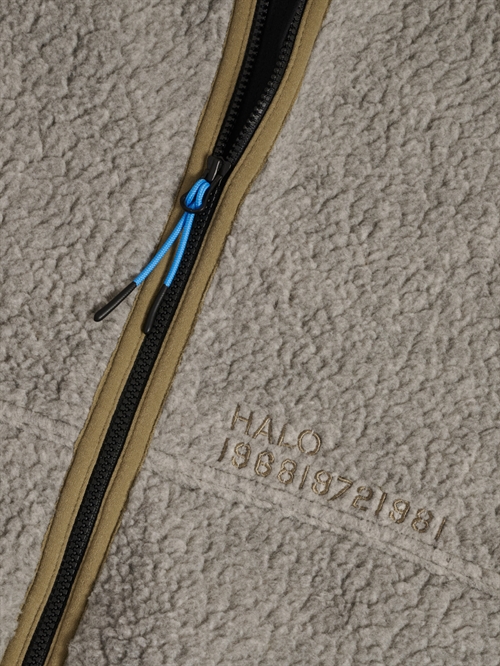 Fleece jakke fra HALO. Jakken er i blød fleece med høj hals og den lukkes med lynlås. Jakken har to skrå sidelommer der også lukkes med lynlås. Logo broderet diskret på brystet.